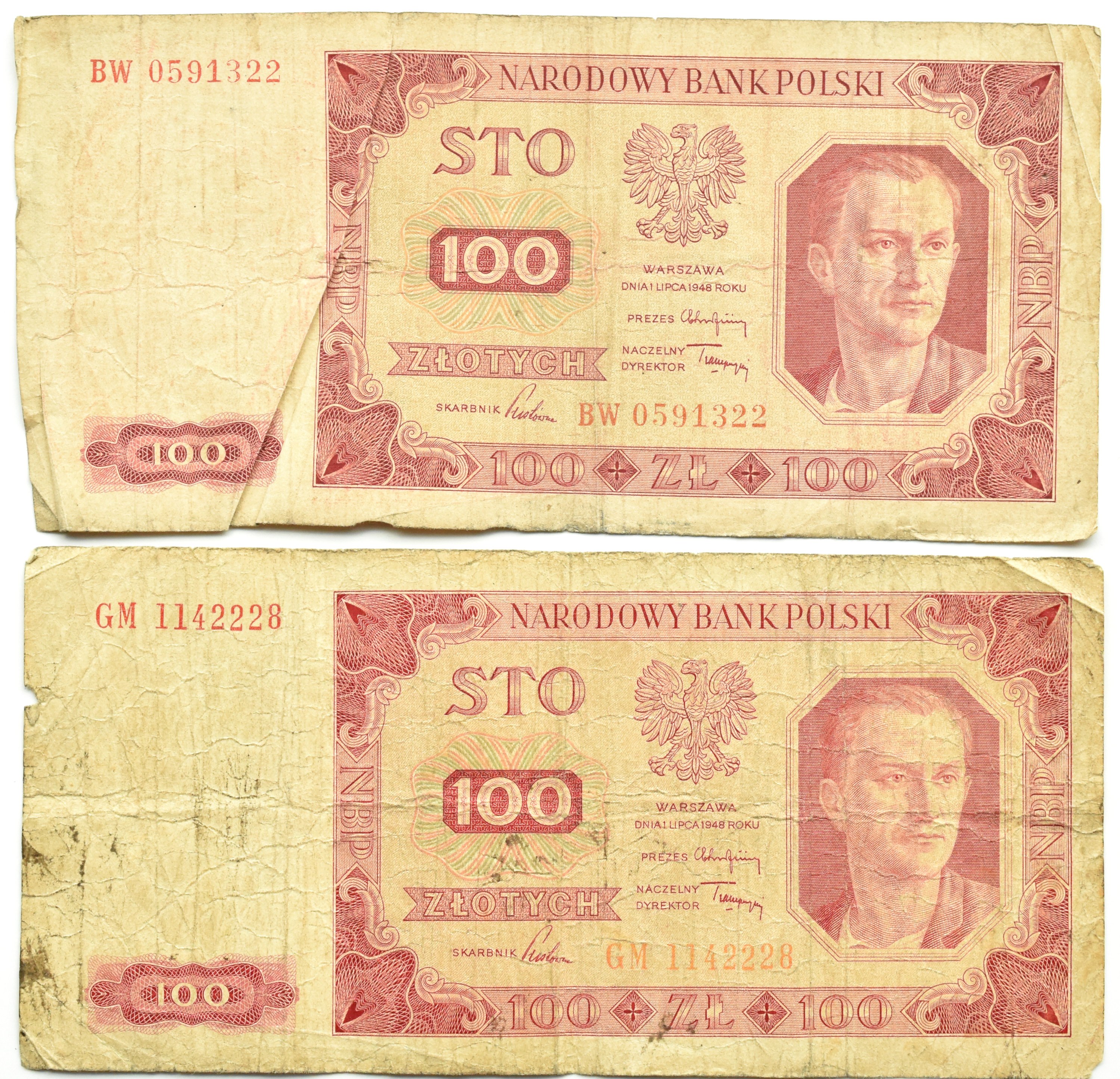 Polska, RP, lot 100 złotych 1948, seria BW, GM, Warszawa