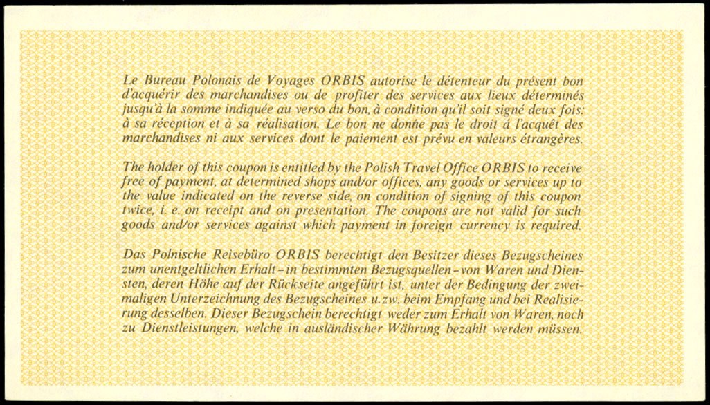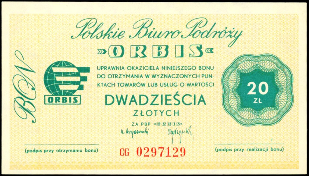 Bony zaopatrzeniowe PRL, Polskie Biuro Podróży \ORBIS, bon na 20 złotych bez daty