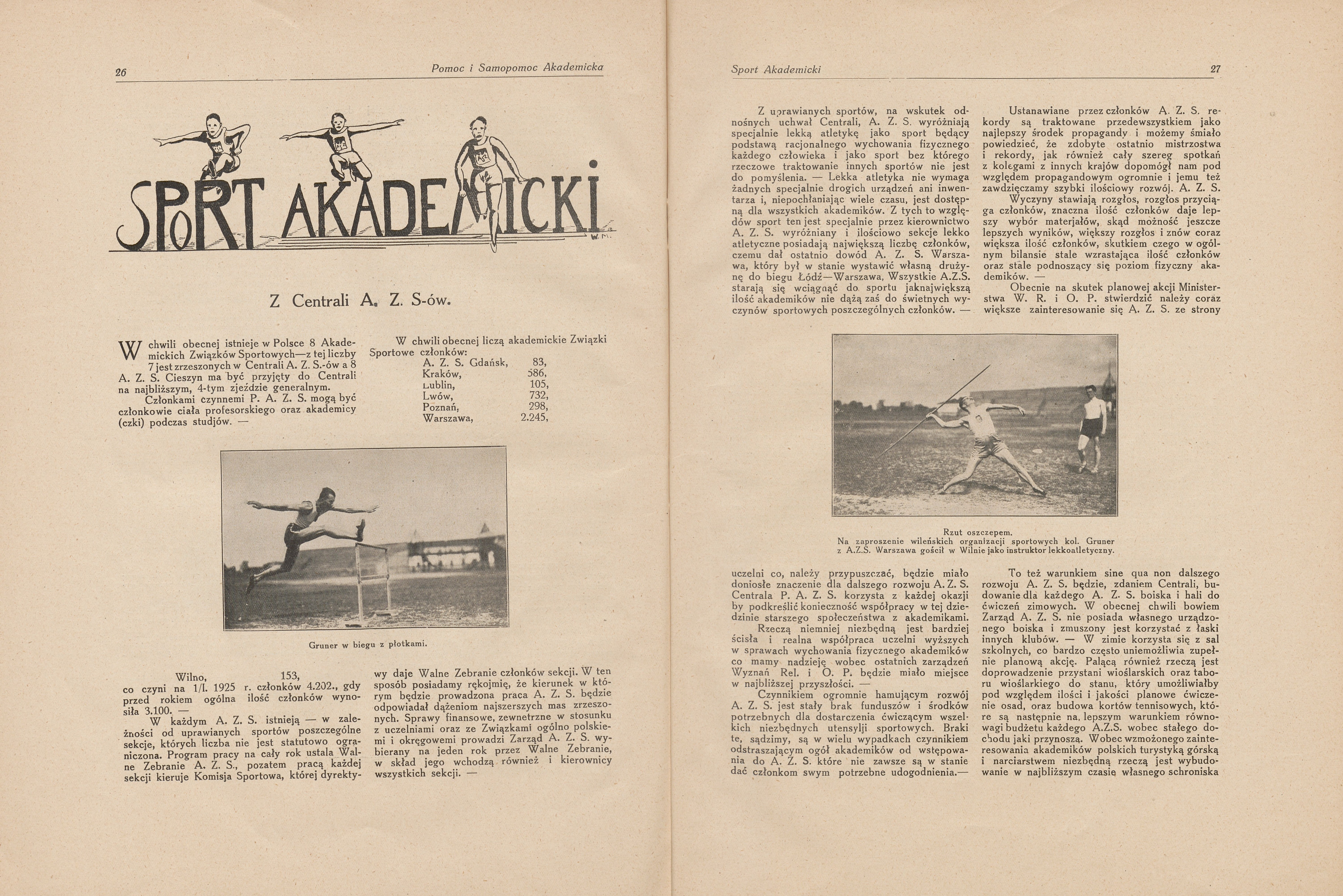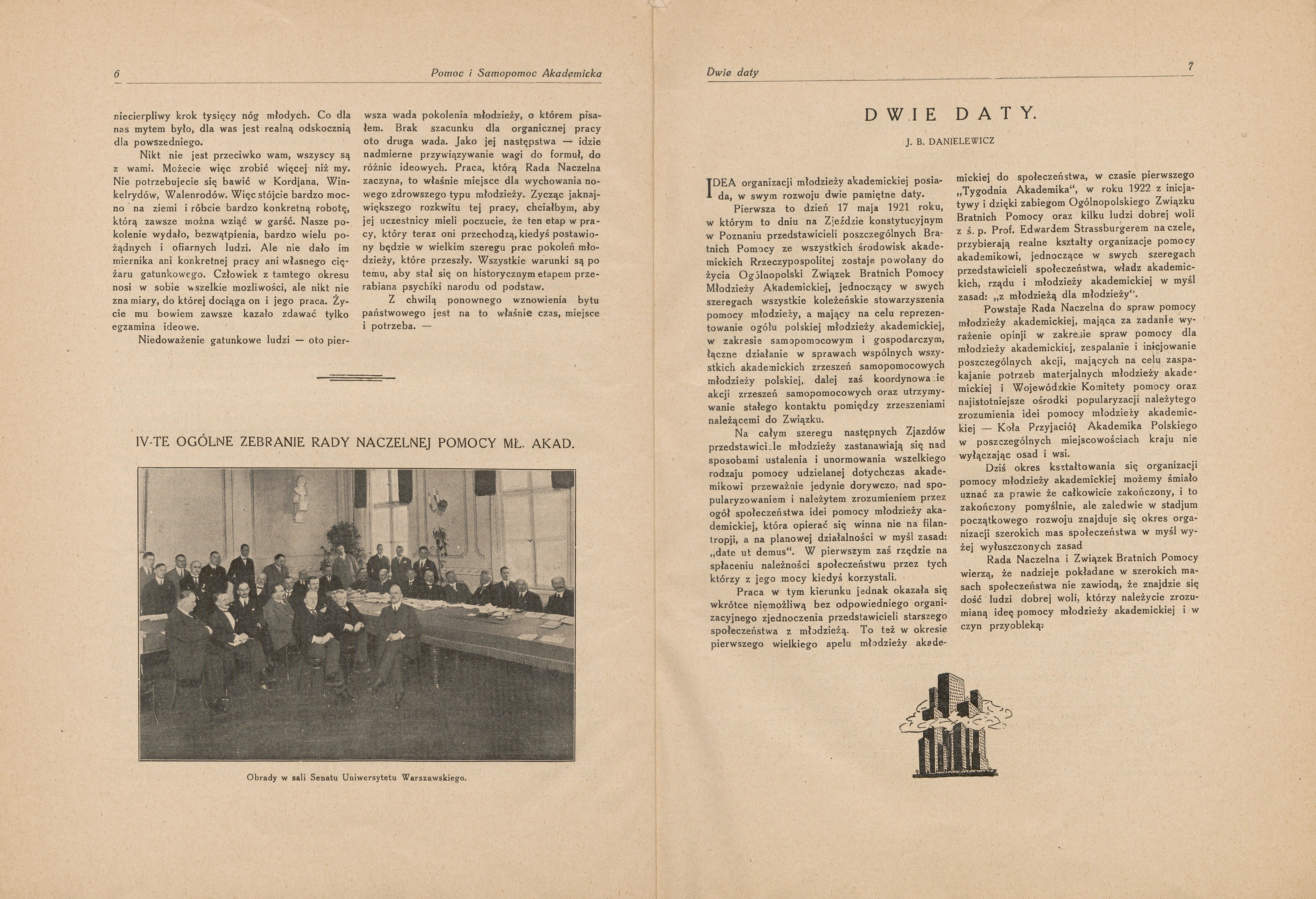 Numer 1 z lipca 1925 roku czasopisma Pomoc i Samopomoc Akademicka. Do jego komitetu redakcyjnego należał m.in. Melchior Wańkowicz. W treści m.in.: Latom, które idą (Melchior Wańkowicz). Sytuacja polskiej młodzieży akademickiej w Gdańsku (Fr. Blimke). Kilka słów o życiu akademika w Belgii (Stanisław Ryl). Z Rady Naczelnej pomocy młodzieży akademickiej. Z Ogólnopolskiego Związku Bratnich Pomocy. O zorganizowanie Akademickich Kół Prowincjonalnych. Sport akademicki.
