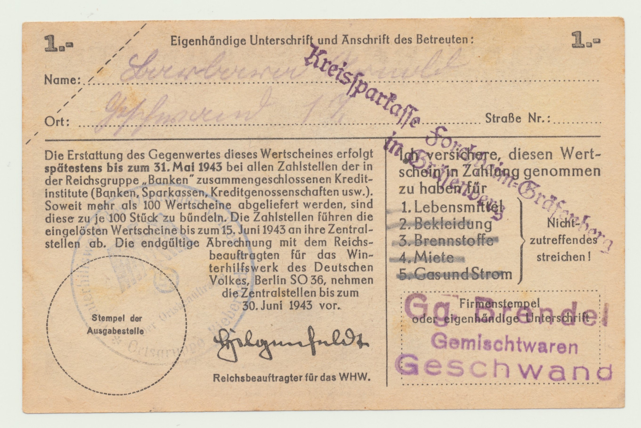 Pomoc Zimowa dla Ludności Niemieckiej, 1 marka 1942-43