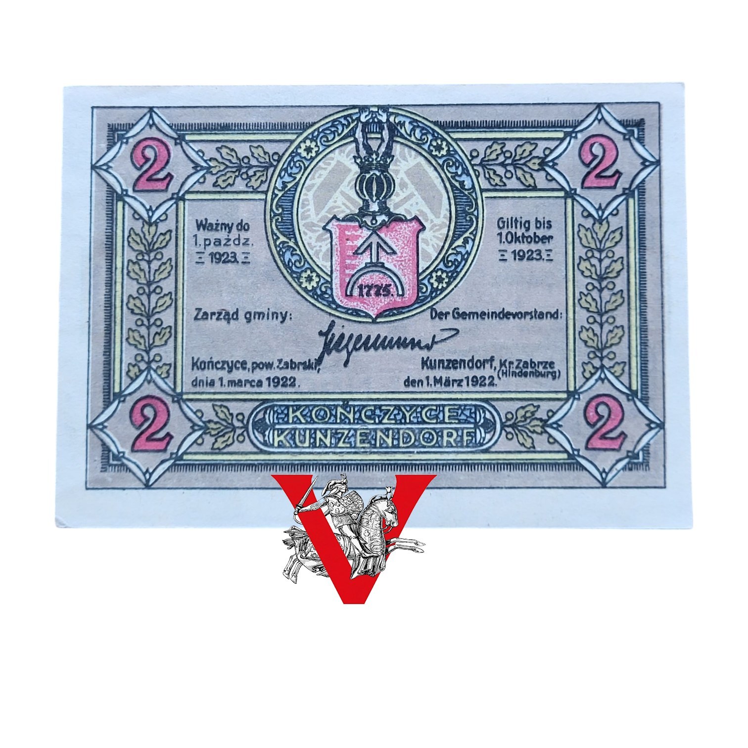 Okolicznościowy banknot , 2 Marki , Ustanowienie Granice Polsko Niemieckiej, stan idealny , 1922.
