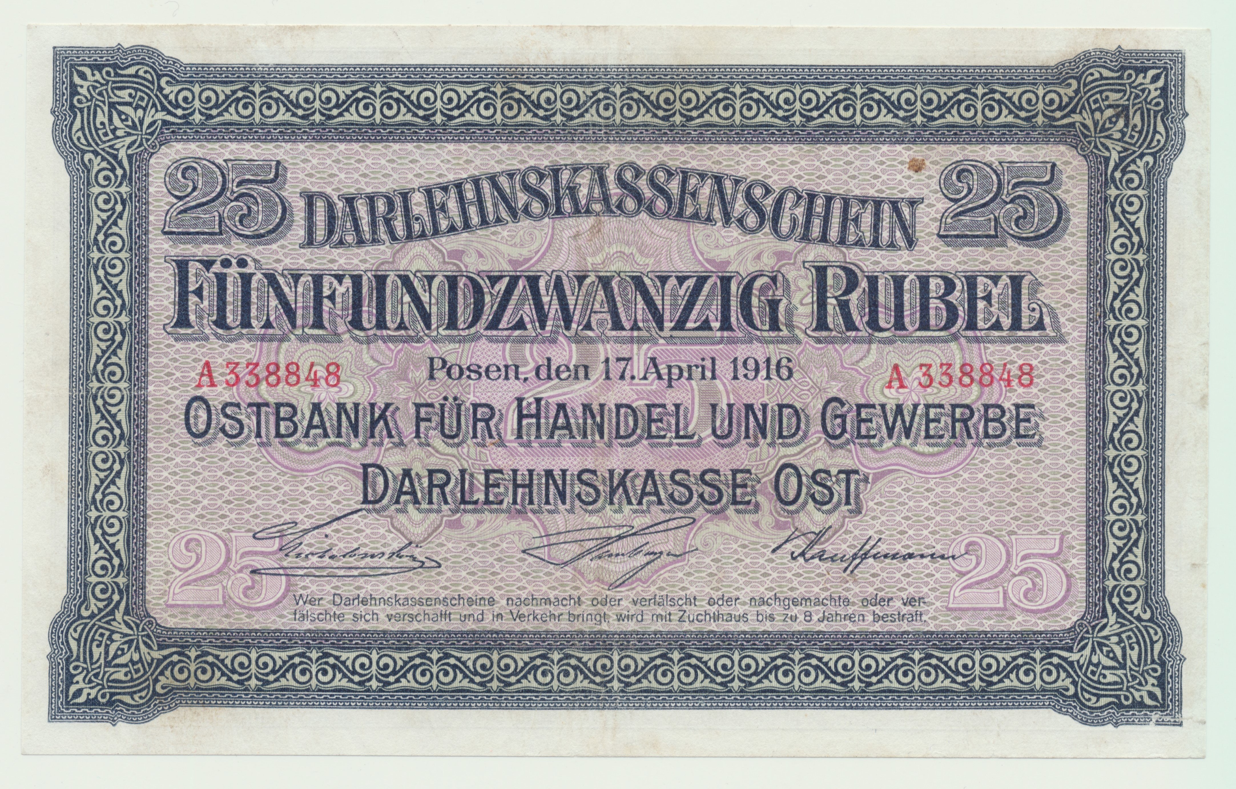 Rzadki nominał. Złamany kilkukrotnie, papier wciąż posiada sztywność, po konserwacji.