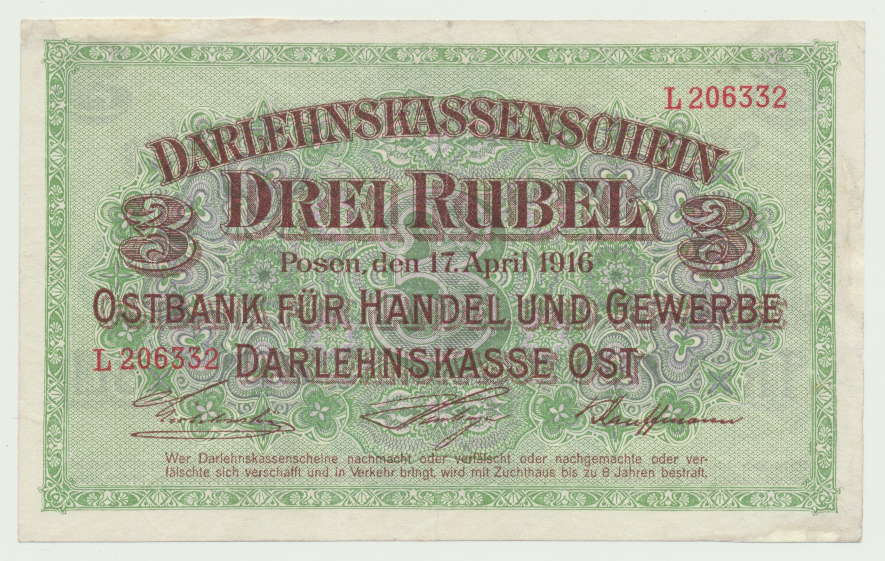 Poznań 3 ruble 1916, ''...nabywa'', ser. L