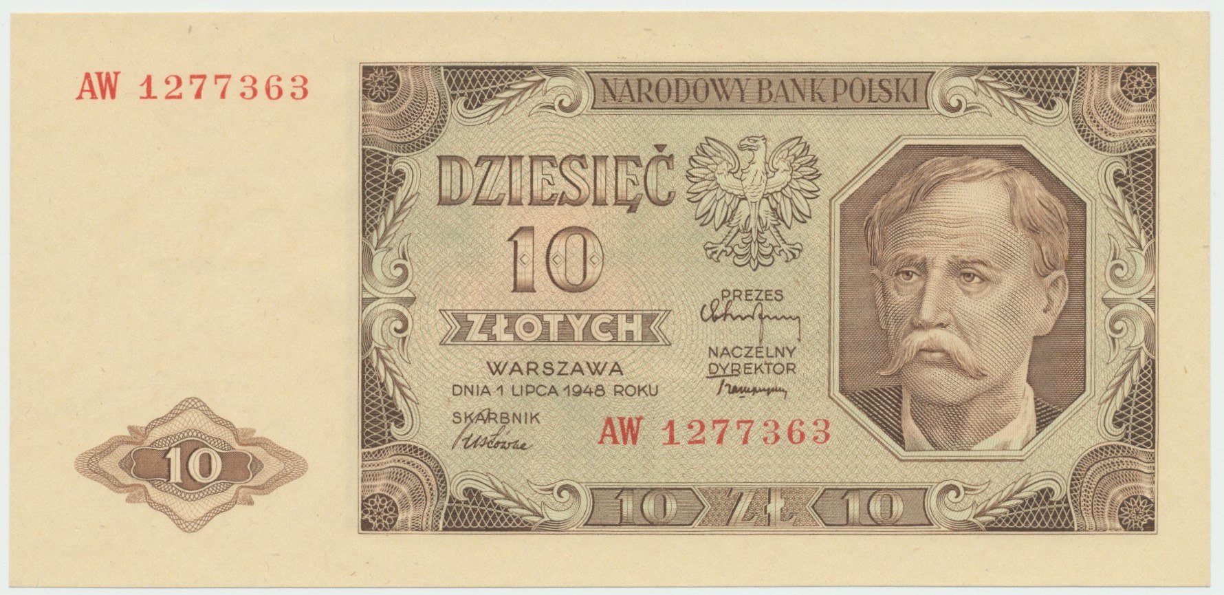 Banknot wprowadzony do obiegu od 30 października 1950 roku, seria drukowana przez PWPW Warawsza.