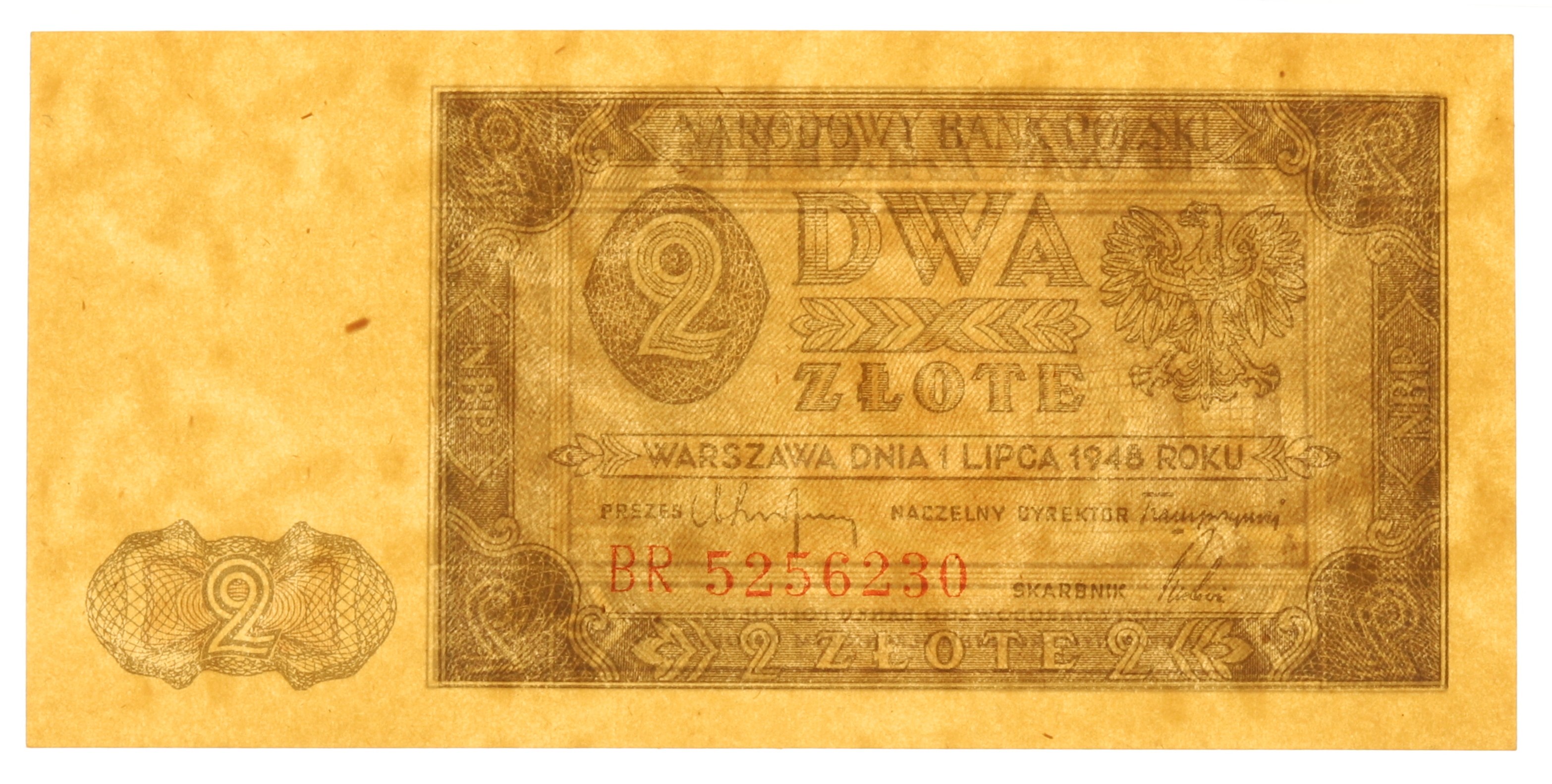 Banknot autorstwa Wacława Borowskiego ze znakiem wodnym bieżącym w postaci kółek i łuków.