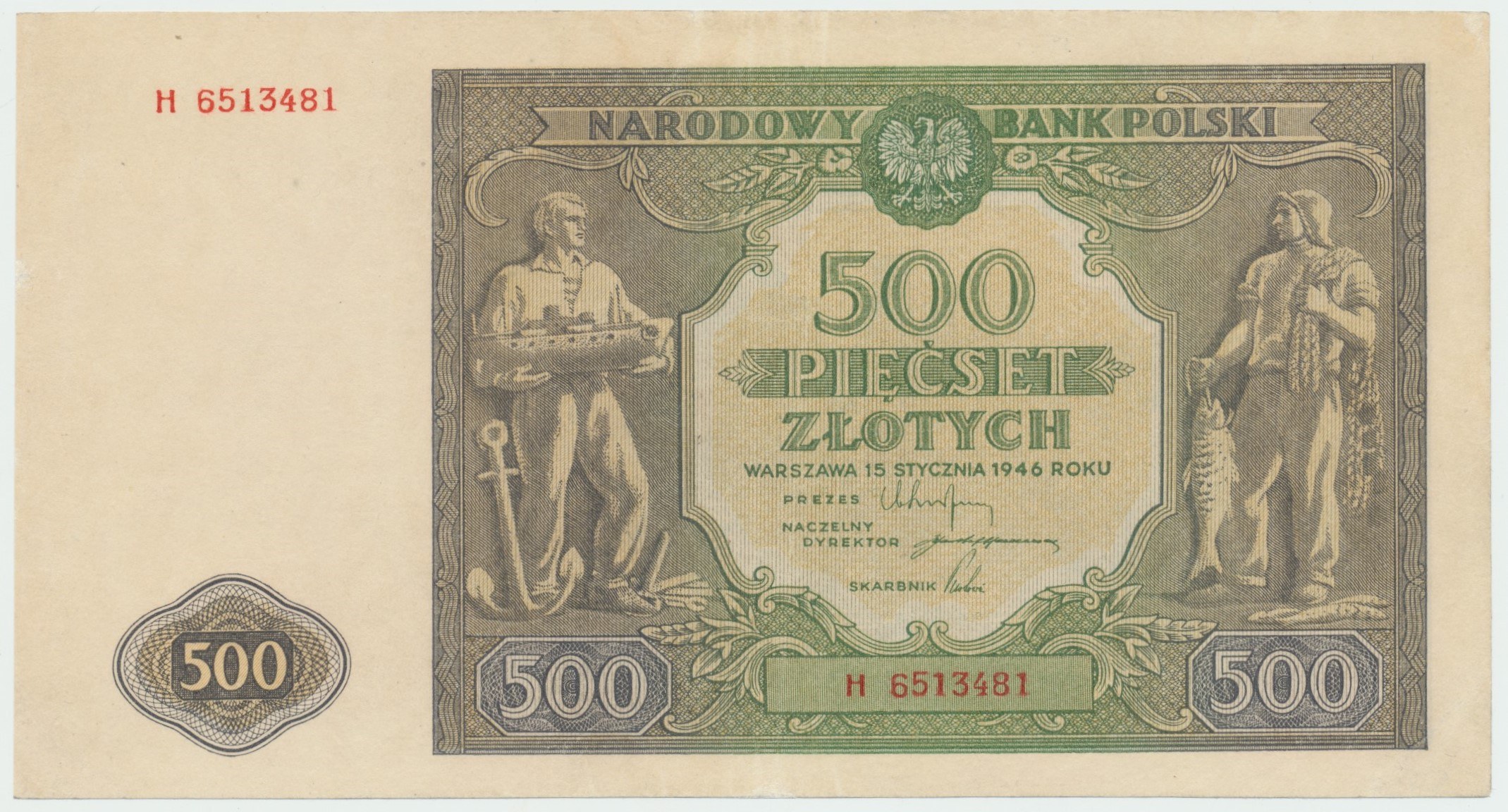 Odmiana z małą literą H, tak jak pozostałe banknoty z lat 1946-1947 o nominale powyżej 50 złotych zawierał motywy socrealistyczne o tematyce robotniczo-chłopskiej.