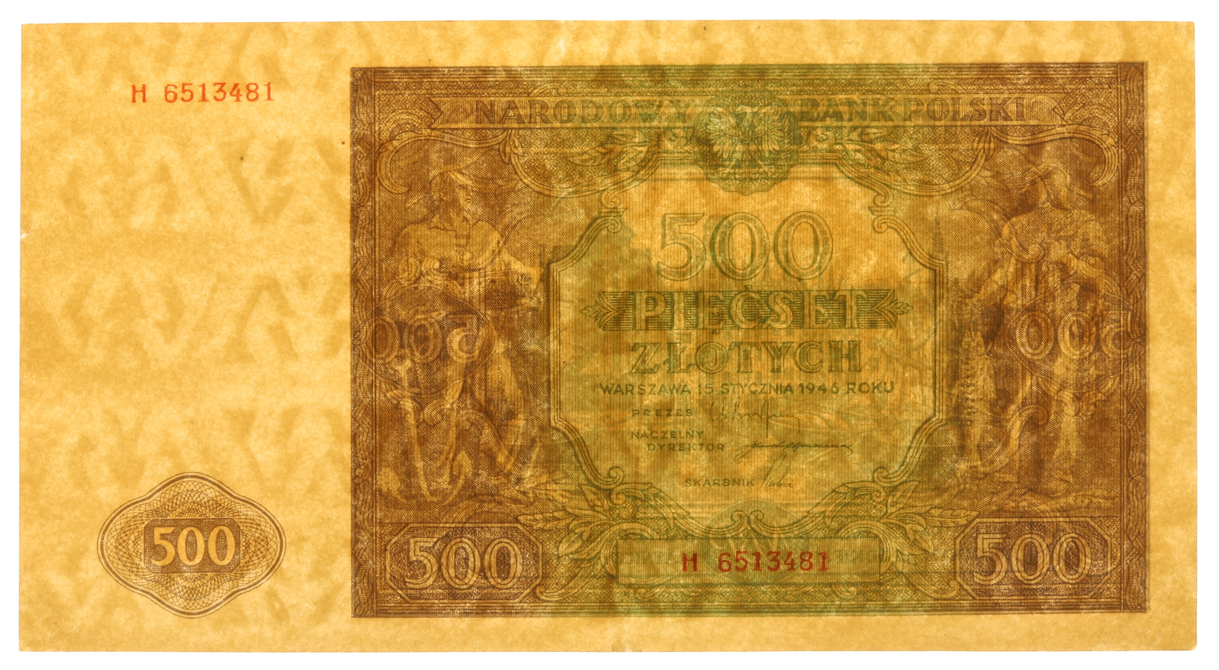 Banknot autorstwa Wacława Borowskiego, znak wodny - stylizowane naprzemiennie jaśniejsze i ciemniejsze litery W.