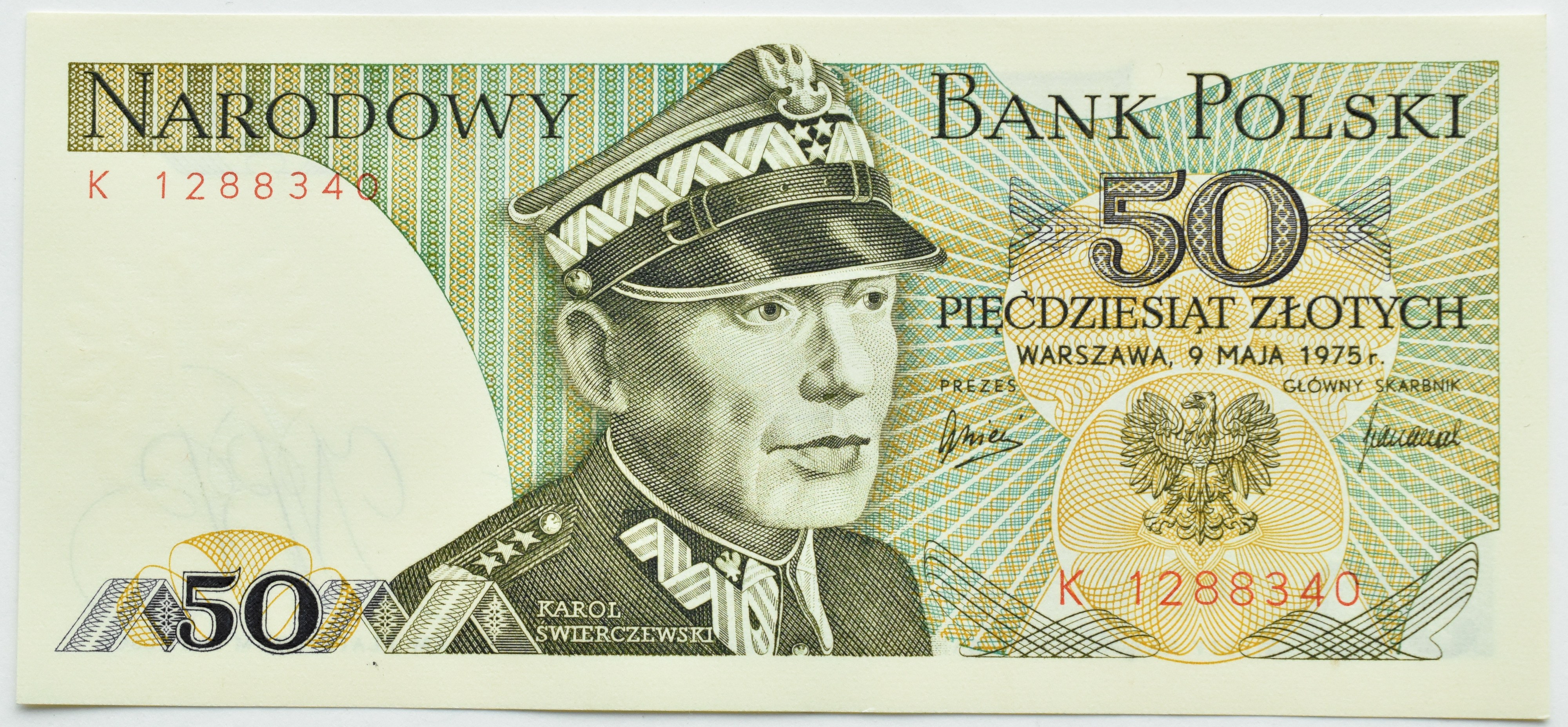 PRL, gen. Karol Świerczewski, 50 złotych 1975, seria K, UNC, PIĘKNE!