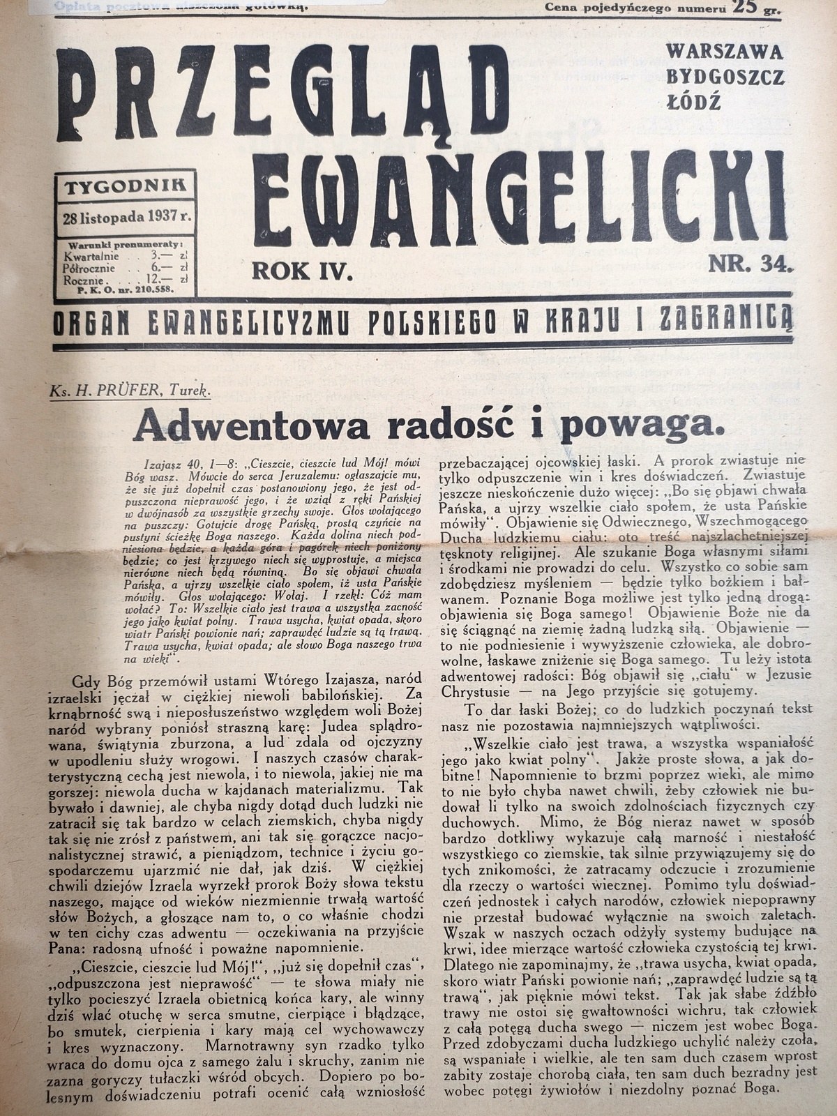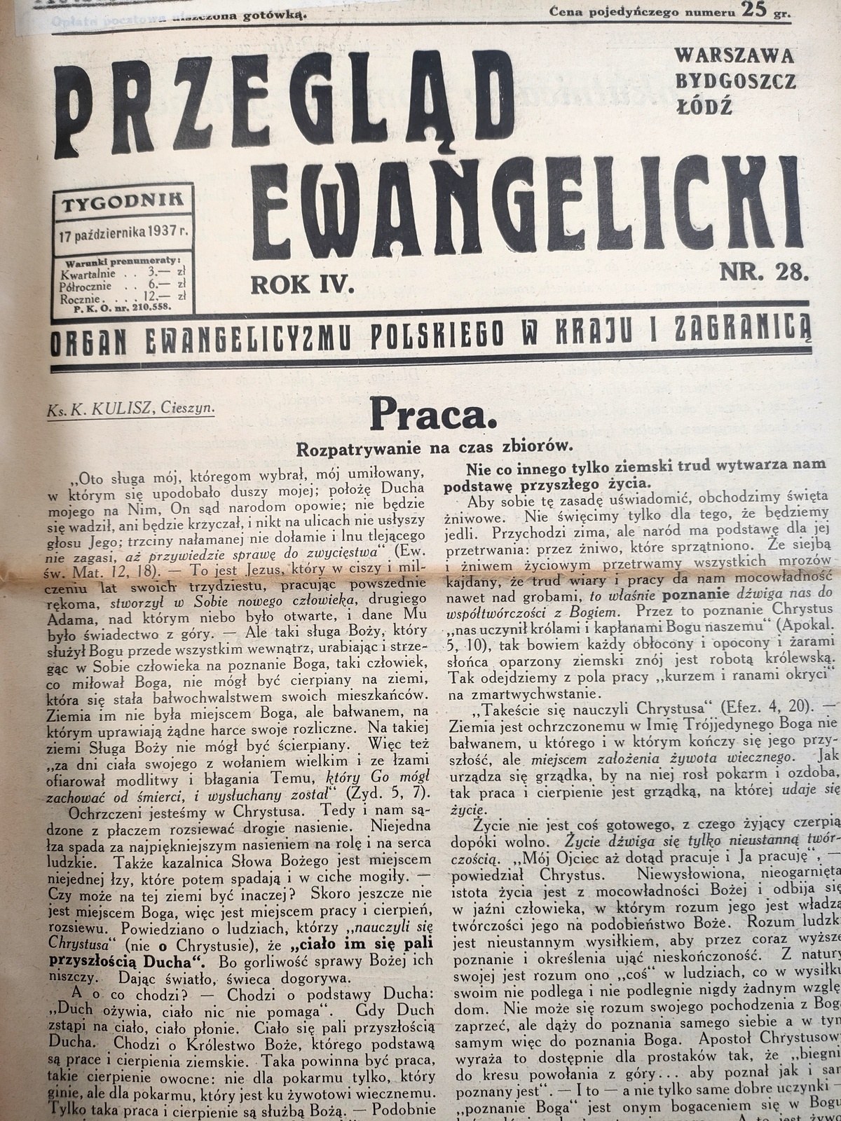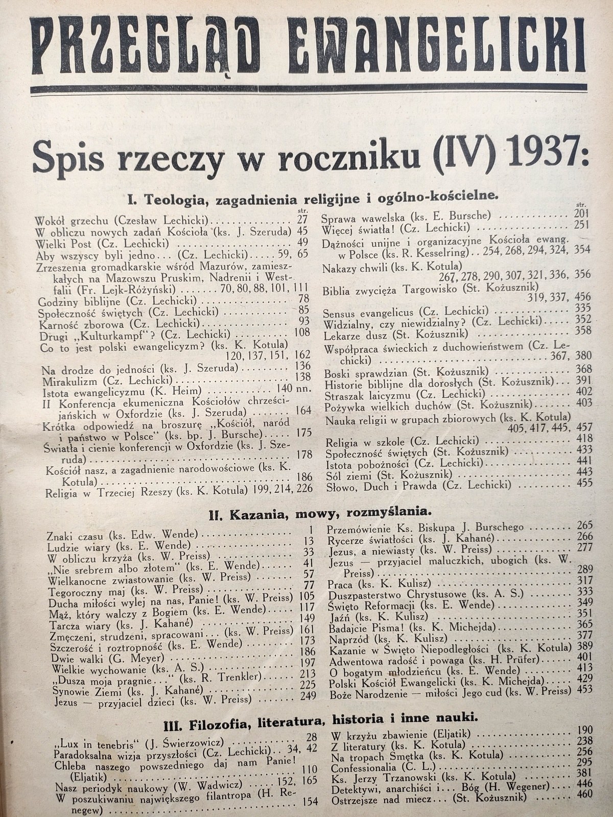 Przegląd ewangelicki rok IV - nr 26 - 38 z 1937 roku
