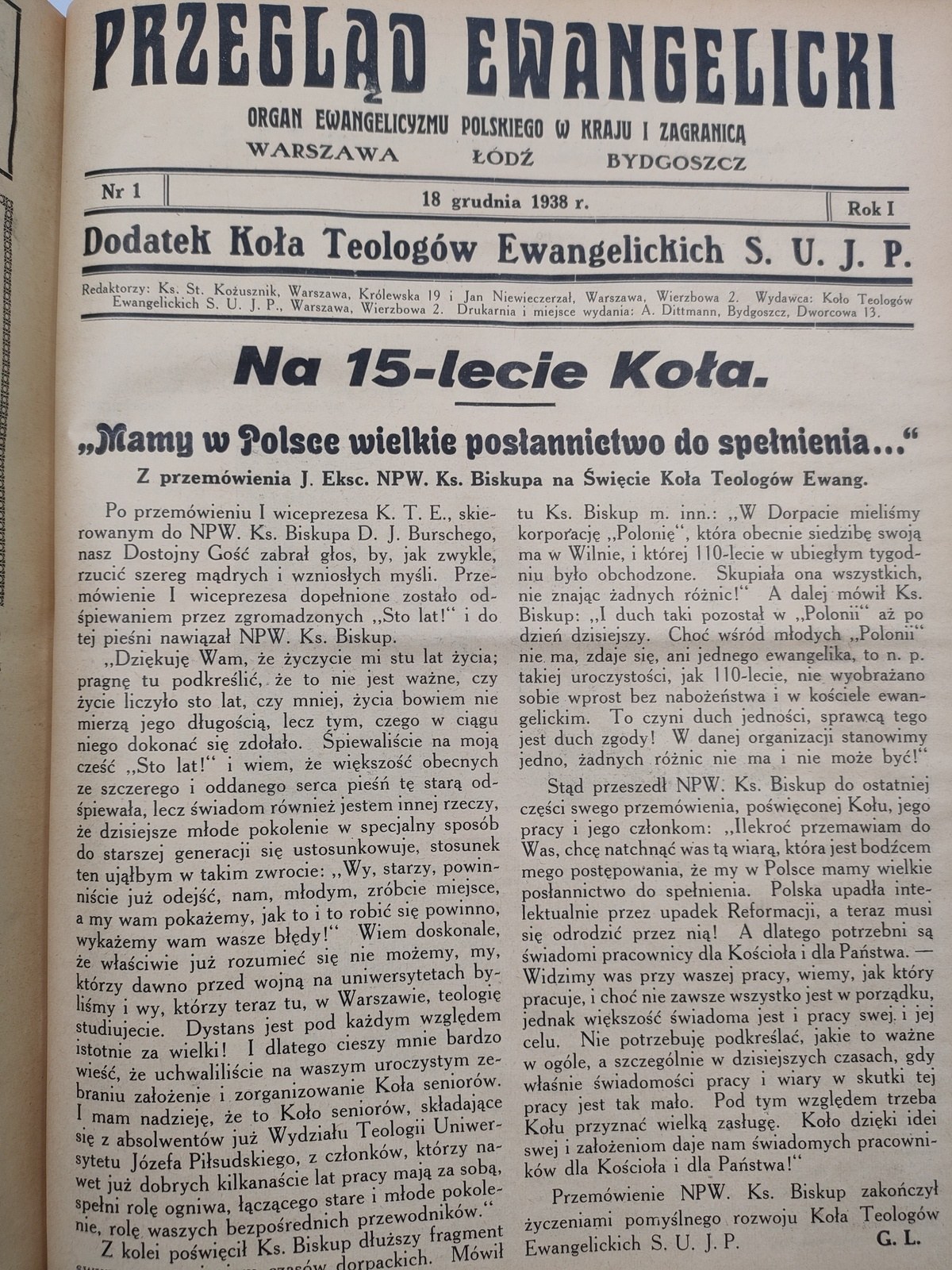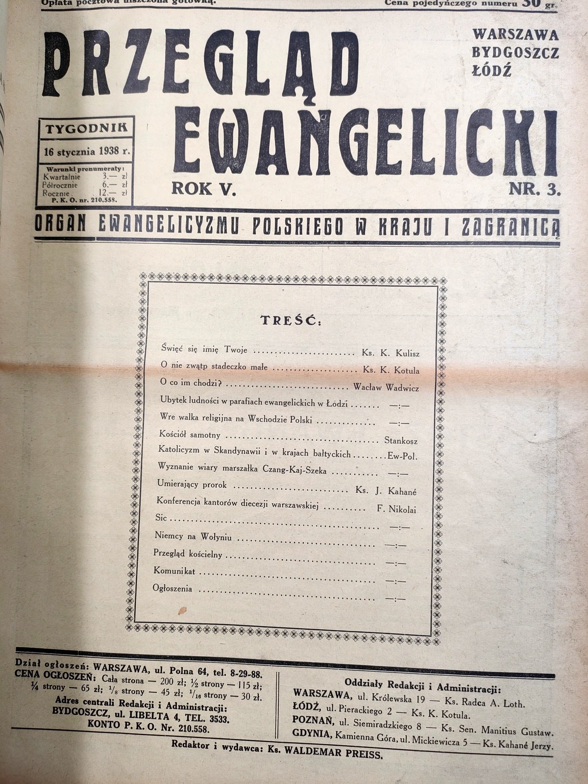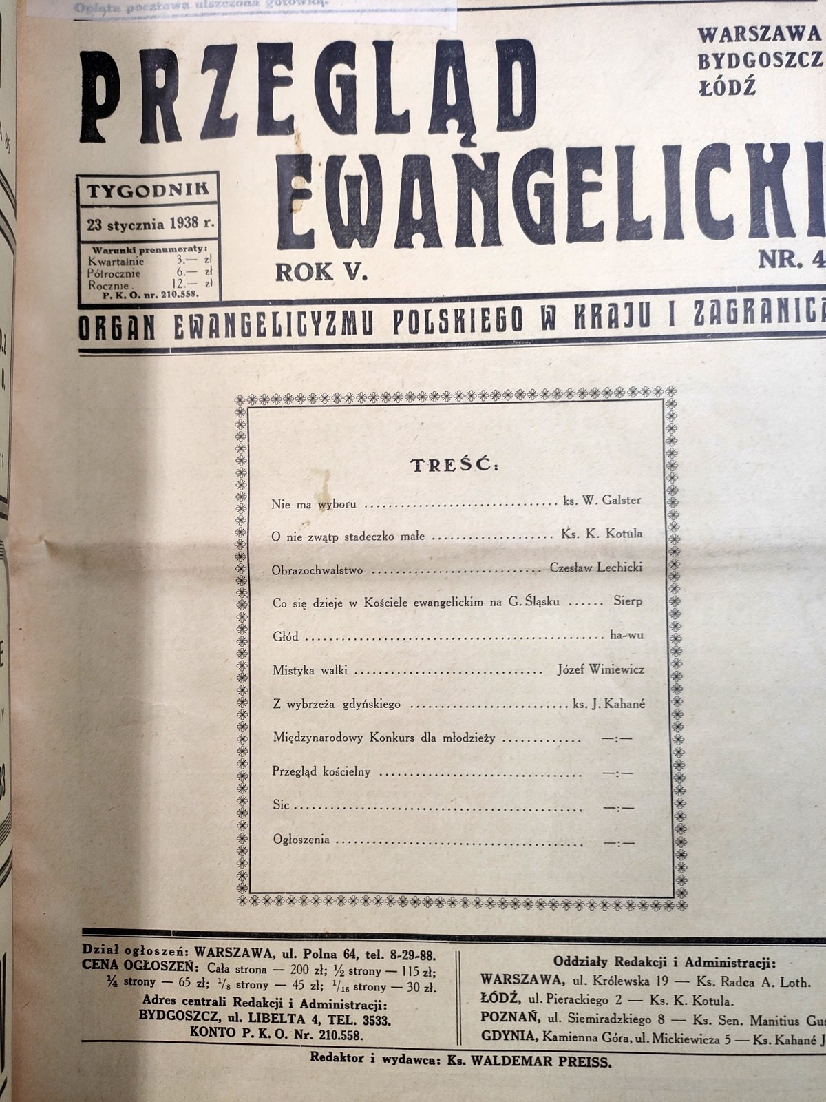 Przegląd ewangelicki rok IV - nr 26 - 38 z 1937 roku