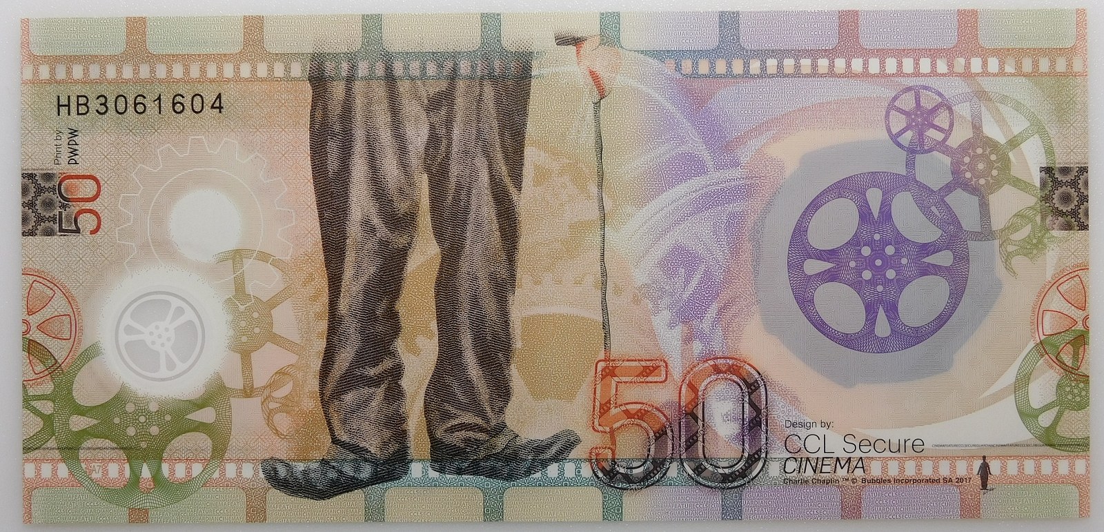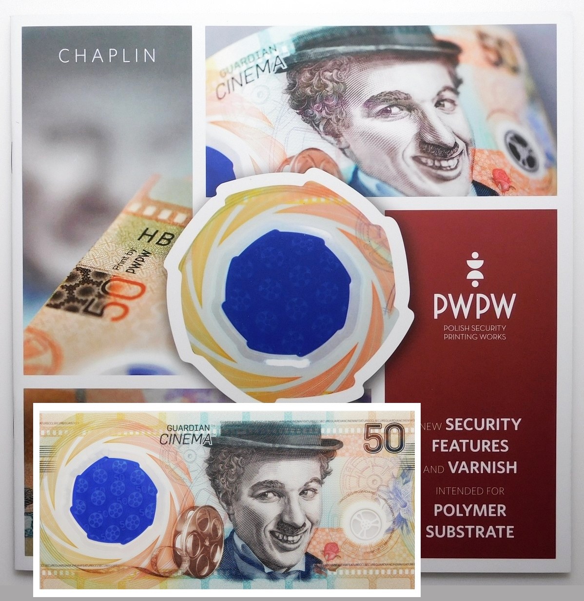 Banknot testowy PWPW - 50 units - Charlie Chaplin 2021 - wraz z folderem emisyjnym