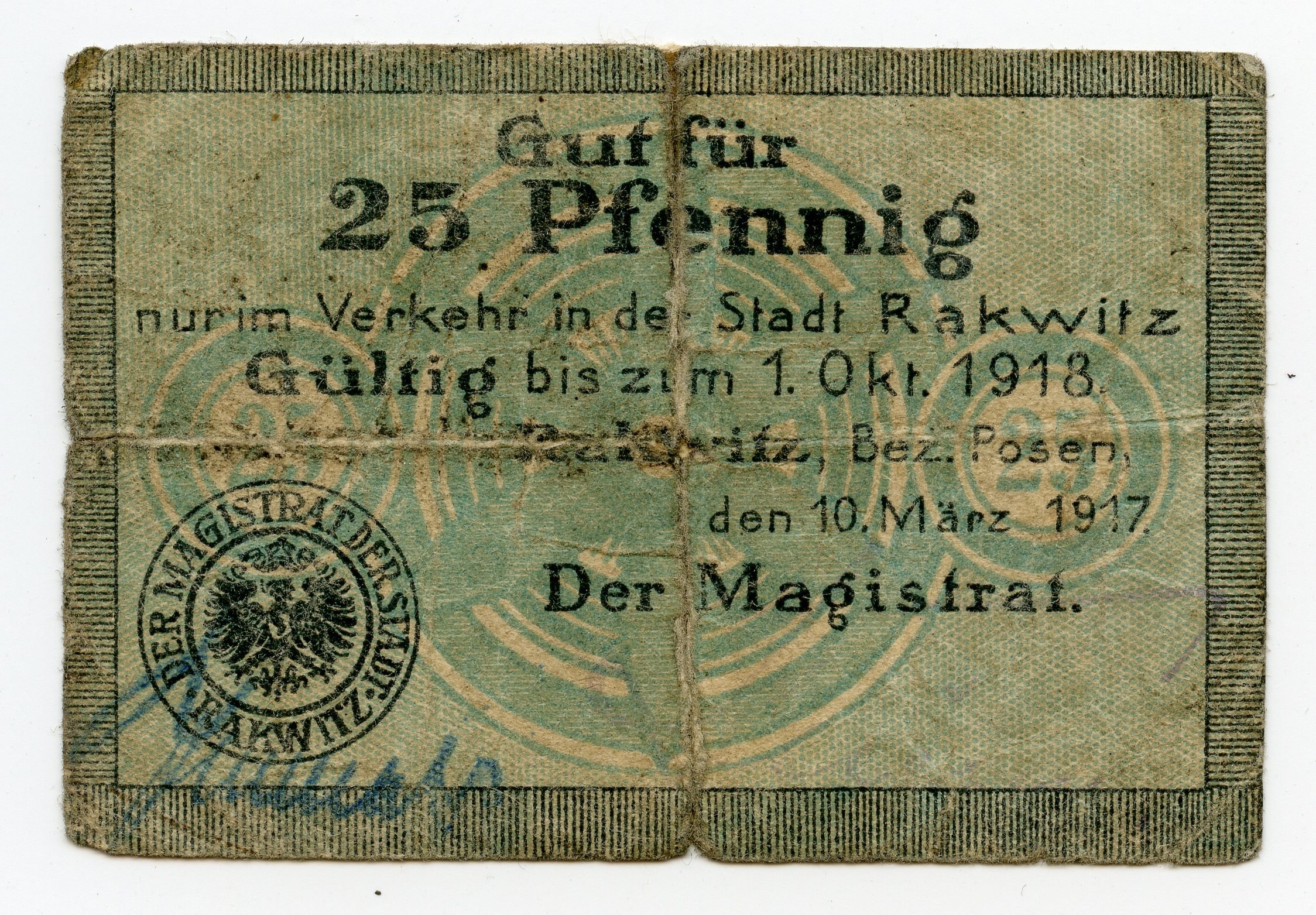 Rakoniewice (Rakwitz) 25 fenigów 1917, bardzo rzadkie