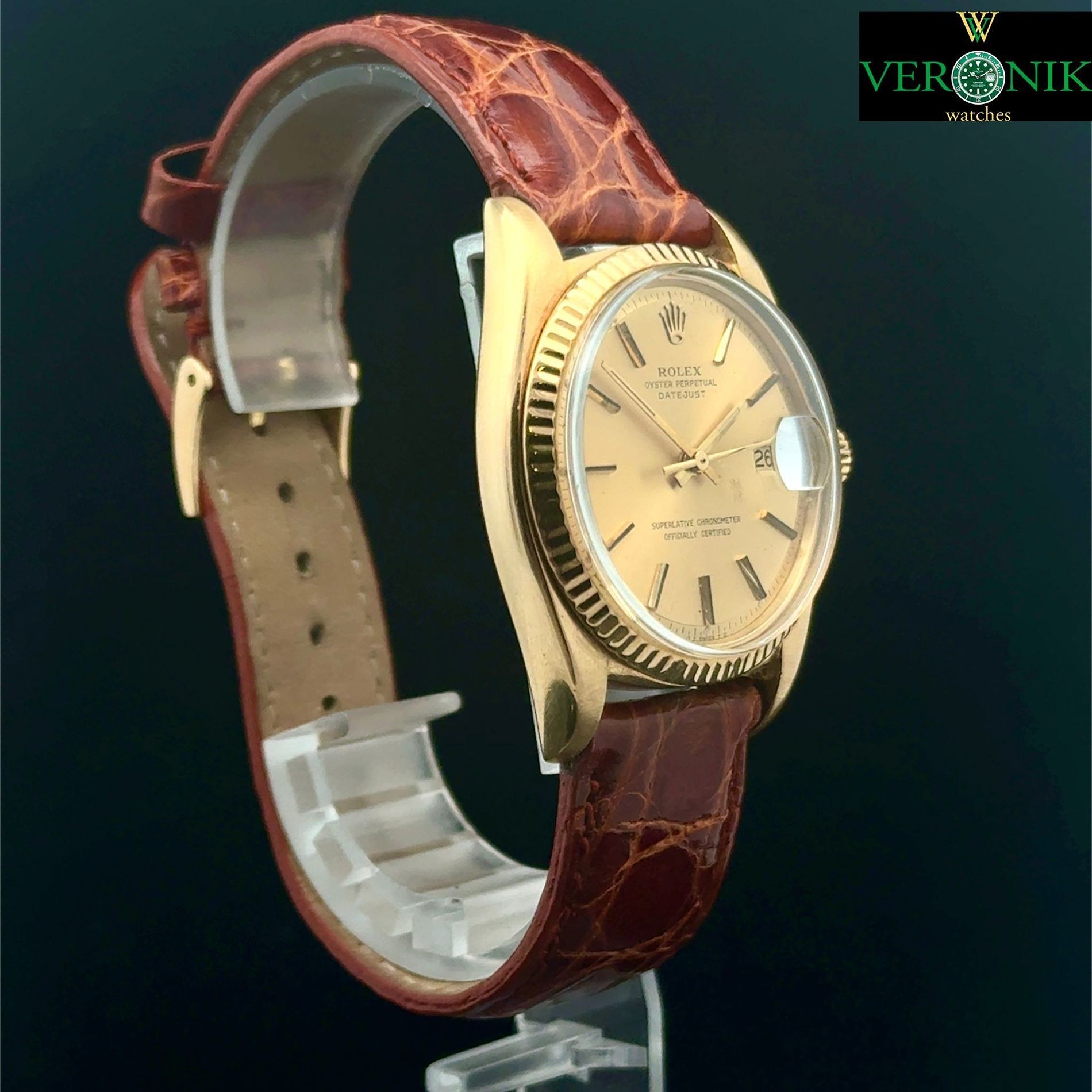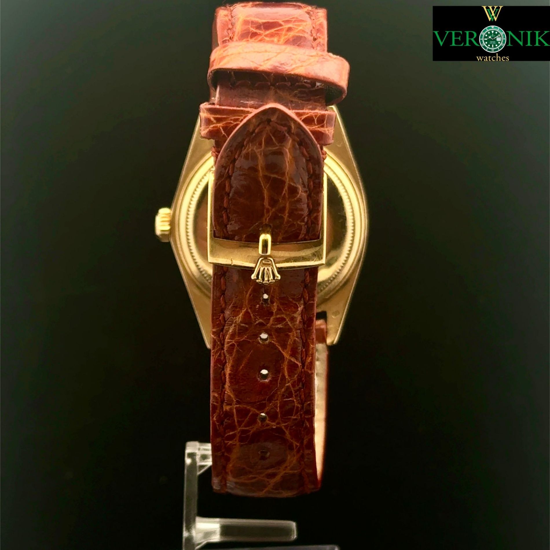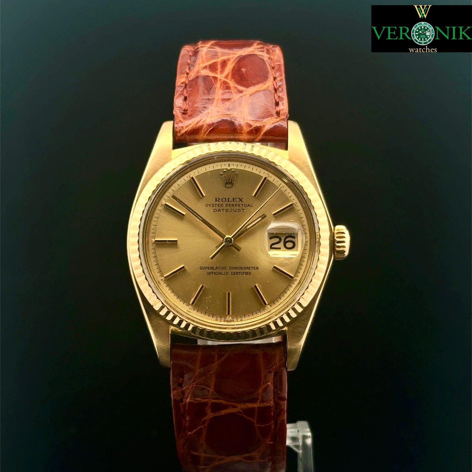 BRAND ROLEX REFERENCE NUMBER 1600 MOVEMENT AUTOMATIC CASE MATERIAL GOLD STRAP MATERIAL AFTERMARKET LEATHER, ROLEX GOLD BUCKLE CONDITION EXCELLENT WITHOUT ORIGINAL BOX OR ORIGINAL PAPERS 1 YEAR SHOP WARRANTY DIAMETER 36MM WATER RESISTANT 10 ATM STRAP STRAP MATERIAL LEATHER FEATURES ONE YEAR SHOP WARRANTY FROM THE DATE OF AUCTION YEAR 1977 - AUCTION COMMISSION 25%