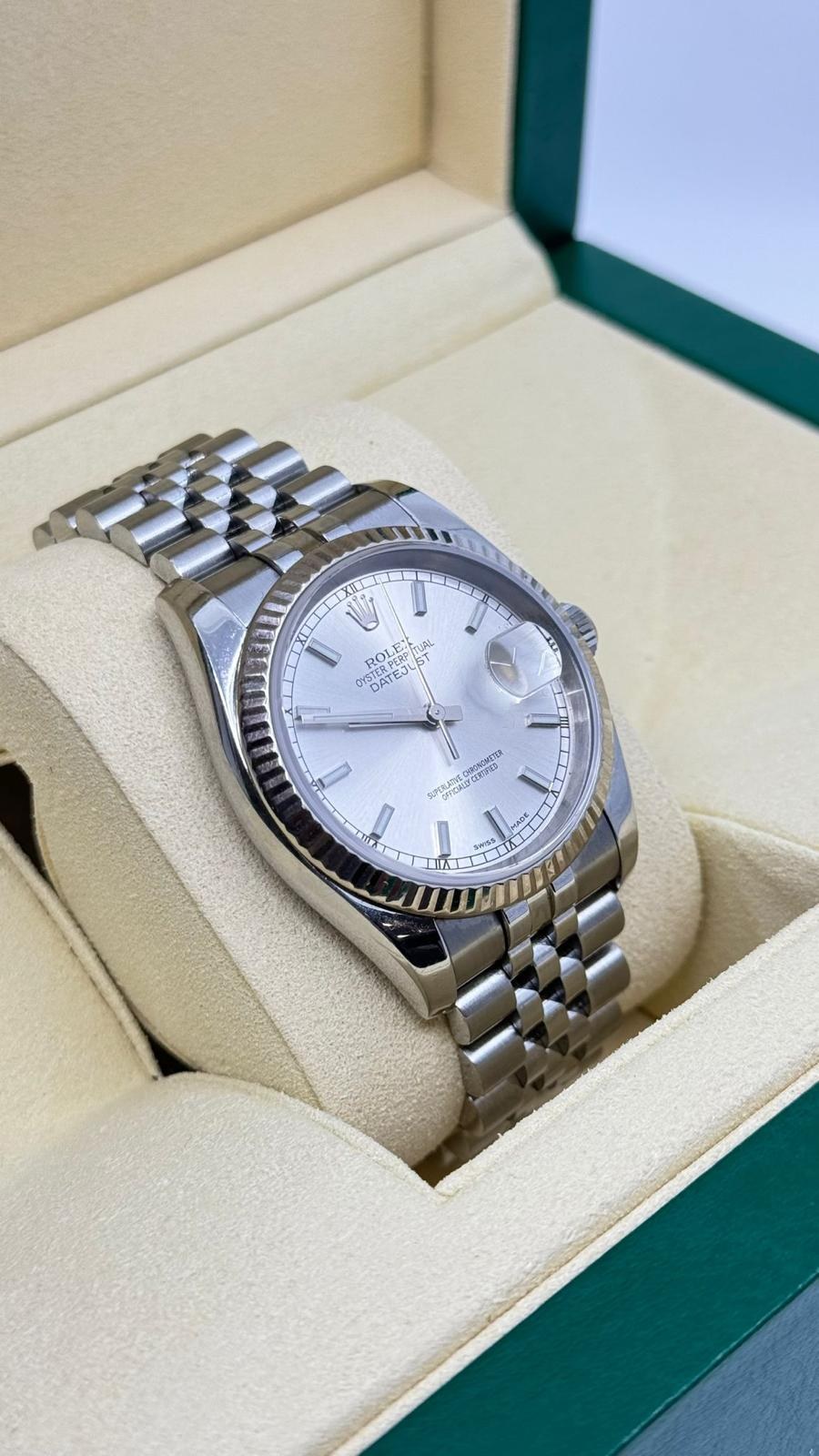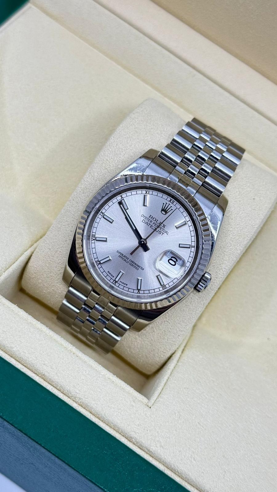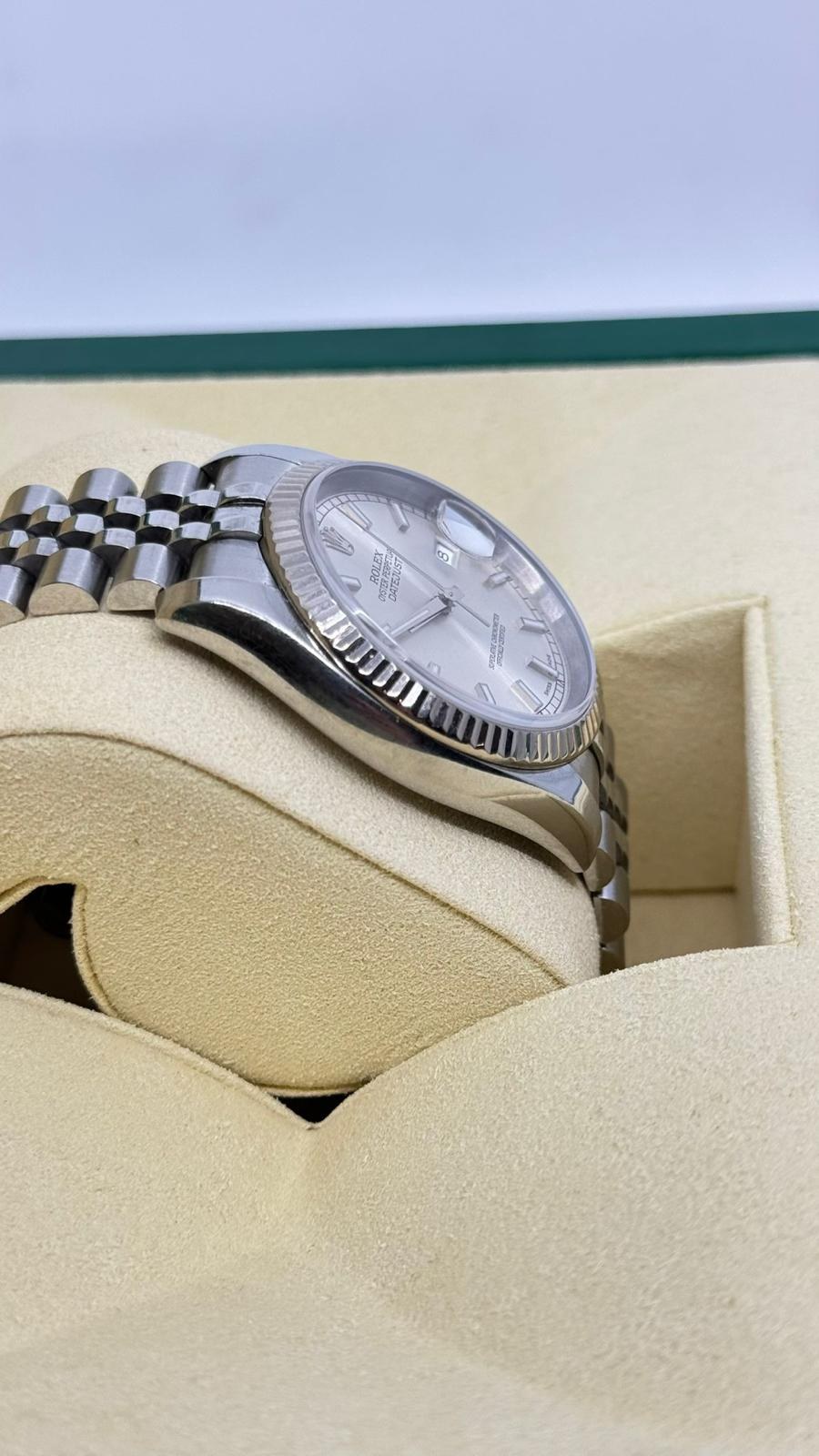 Brand Rolex Model (Watch) Datejust 36 Reference number 116234 Winding Automatic Case material Gold/Steel Strap material Steel Year of production 2004/06 Condition Excellent Kit With original documents, Without original box Automatic winding Case Material Case Gold/Steel Diameter 36 mm Waterproof 10 ATM Bezel material White gold Glass Sapphire glass Dial Silver Strap Strap material Steel Strap color Steel Folding clasp Clasp material Steel Functions Date |