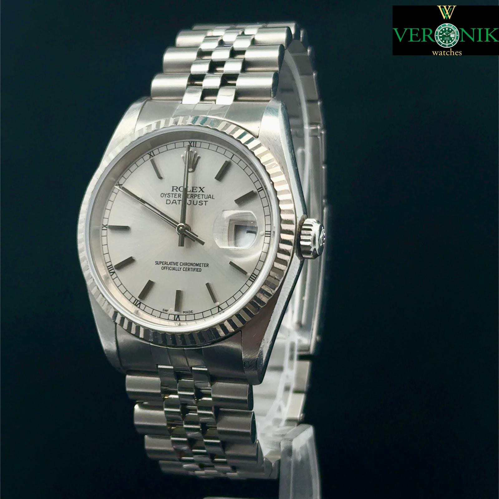 BRAND ROLEX MODEL (WATCH) DATEJUST 36 REFERENCE NUMBER 16234 MOVEMENT AUTOMATIC CASE MATERIAL STEEL STRAP MATERIAL STEEL YEAR 2003 CONDITION USED (EXCELLENT) THE ITEM HAS SLIGHT SIGNS OF WEAR, SUCH AS LIGHT SCRATCHES, BUT NOT PERCEPTIBLE TO THE TOUCH. ORIGINAL ROLEX PAPERS, NO BOX, THE BOX IS USED ONLY FOR PHOTOGRAPHS IS NOT FOR SALE MOVEMENT AUTOMATIC CASE CASE MATERIAL STEEL DIAMETER 36 MM WATER RESISTANT 10 ATM BEZEL MATERIAL WHITE GOLD GLASS SAPPHIRE CRYSTAL STRAP STRAP MATERIAL STEEL STRAP COLOR STEEL CLASP DÉPLOYANTE CLASP MATERIAL STEEL - AUCTION COMMISSION 25%