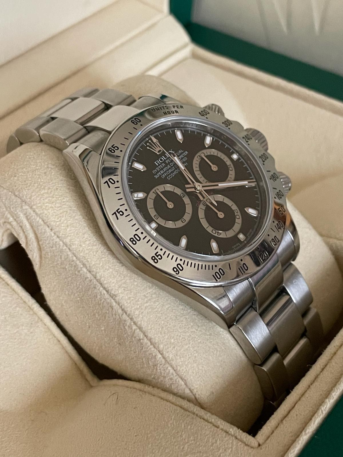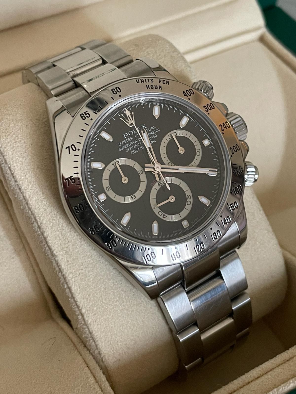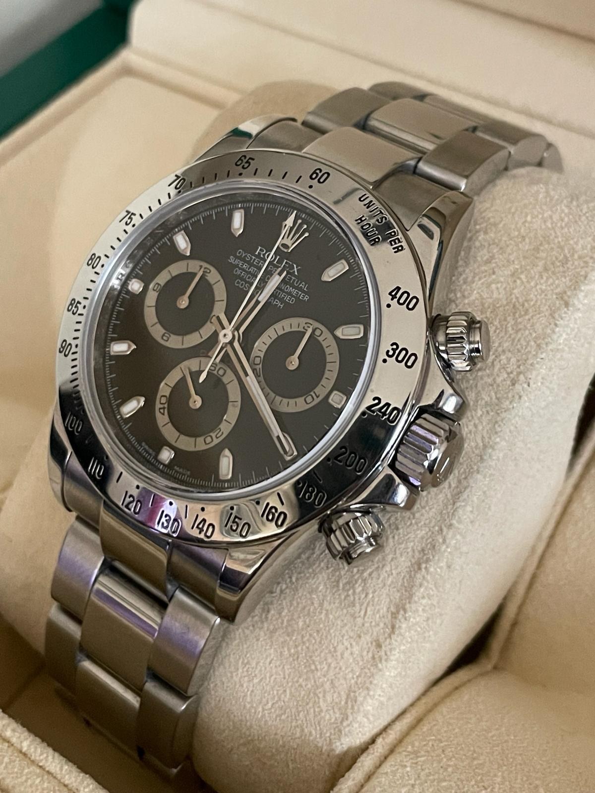 Brand Rolex Model (Watch) Daytona Reference number 116520 Winding Automatic Case material Steel Strap material Steel Year of production 2007 Condition Excellent (second hand, no or barely visible signs of wear) Original Rolex documents set, no box Case material Steel Diameter 40 mm Waterproof 10 ATM Bezel material Steel Glass Sapphire glass White dial Numbers on the dial Without numbers Strap Strap material Steel Strap color Steel Folding clasp Clasp material Steel |