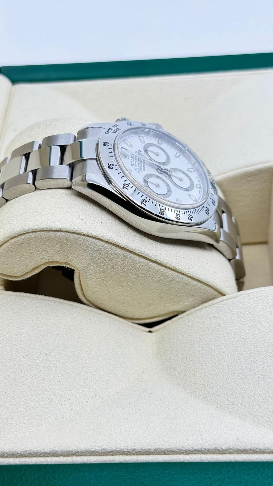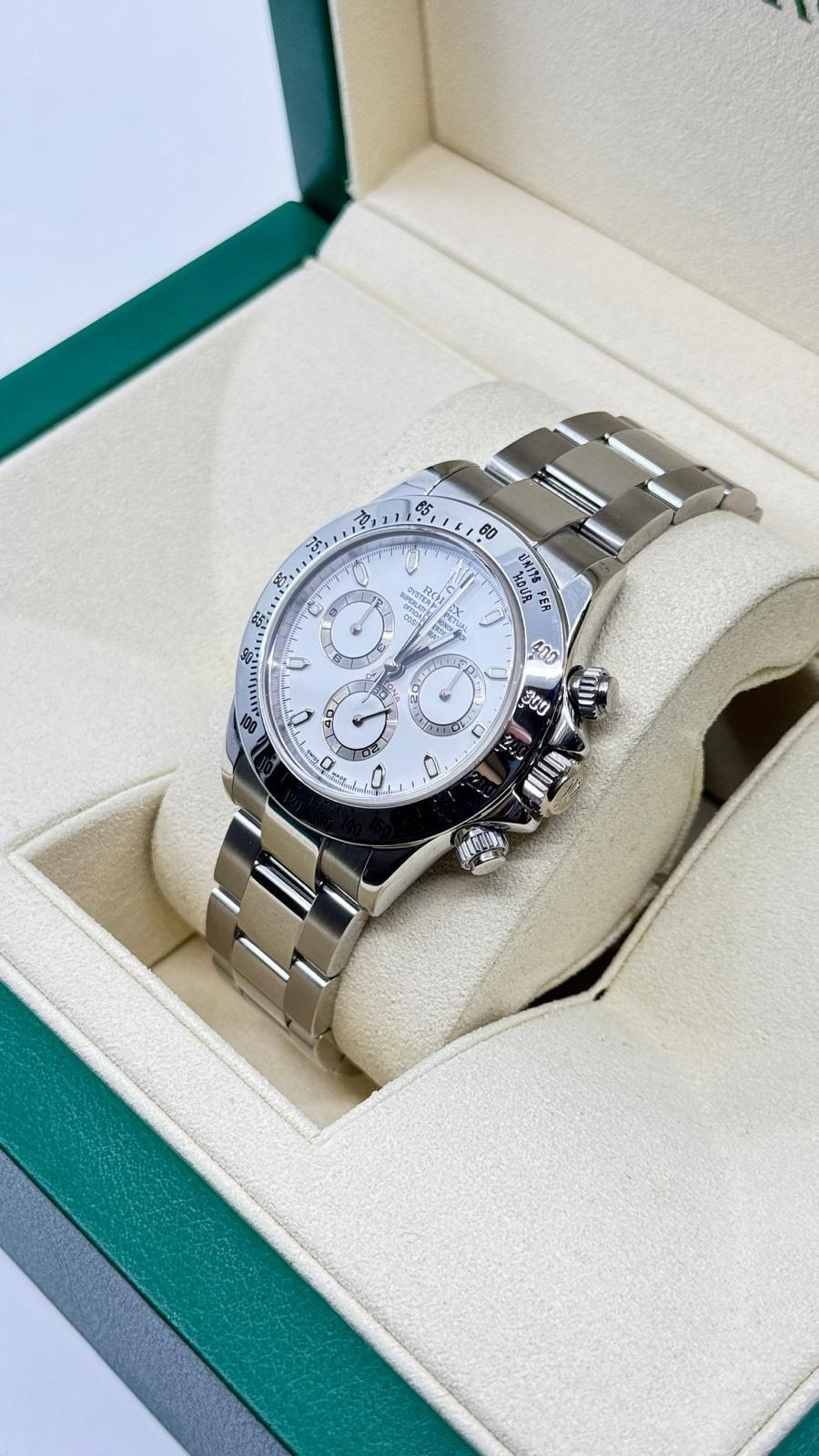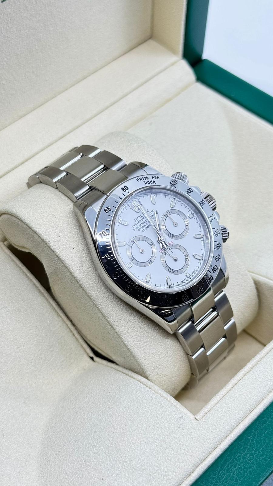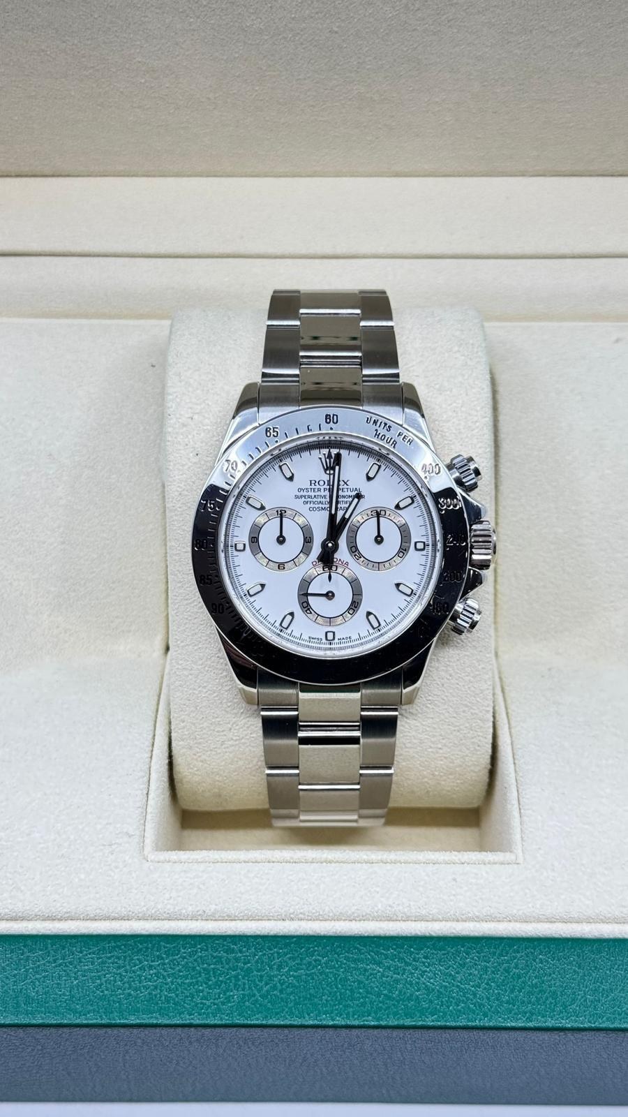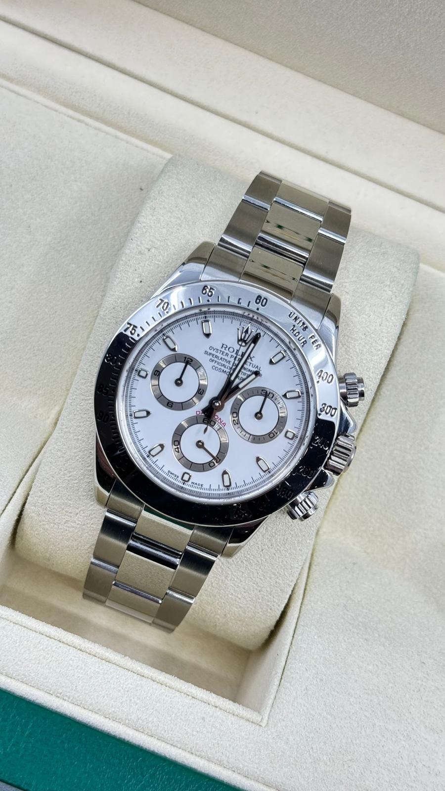 BRAND ROLEX MODEL (WATCH) DAYTONA REFERENCE NUMBER 116520 WINDING AUTOMATIC CASE MATERIAL STEEL STRAP MATERIAL STEEL CONDITION USED (EXCELLENT) ORIGINAL PAPER DOCUMENTS, NO BOX CASE MATERIAL STEEL DIAMETER 40 MM WATERPROOF 10 ATM BEZEL MATERIAL STEEL GLASS SAPPHIRE GLASS NUMBERS ON THE DIAL WITHOUT NUMBERS STRAP STRAP MATERIAL STEEL STRAP COLOR STEEL FOLDING CLASP CLASP MATERIAL STEEL.