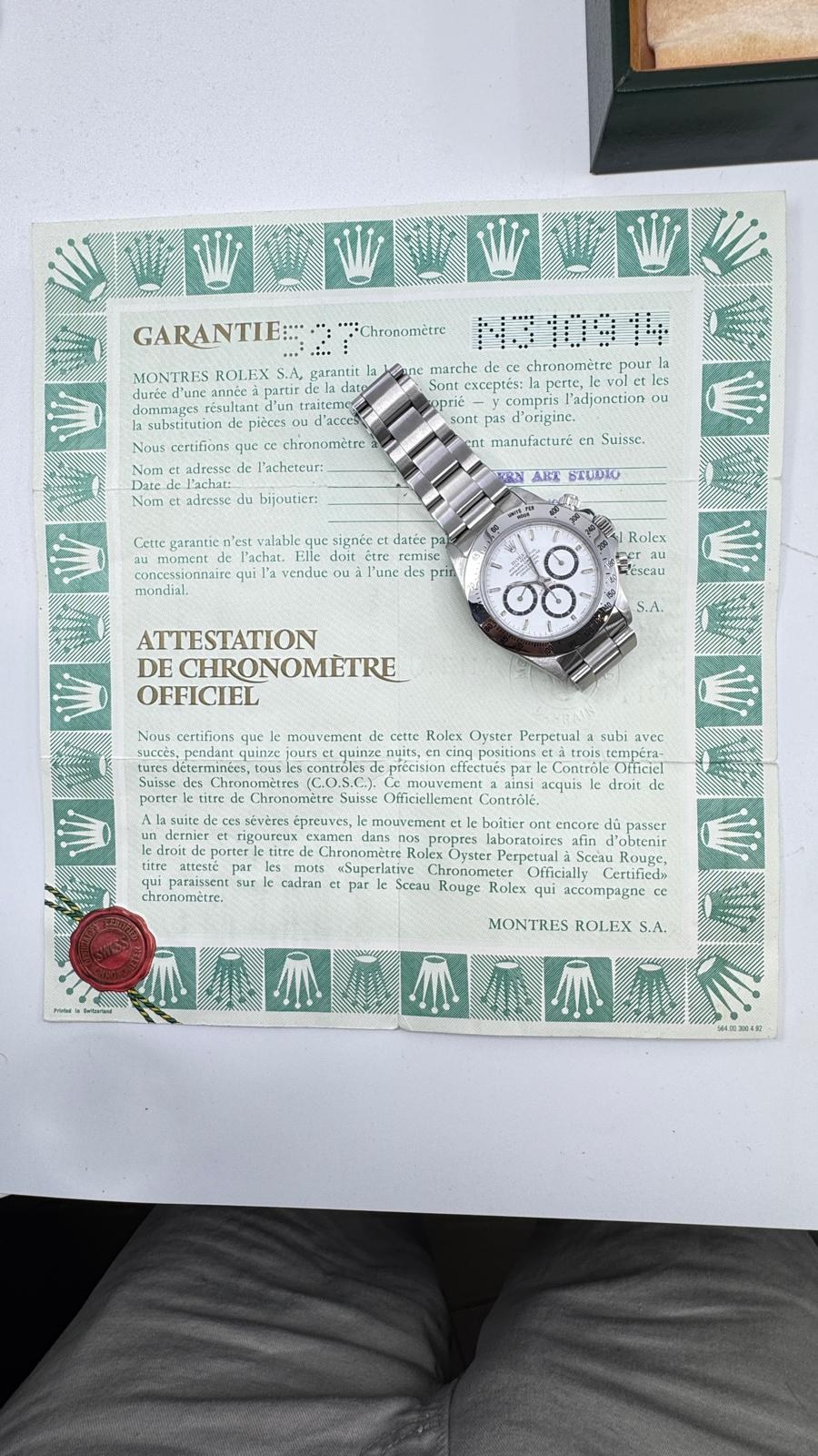 BRAND ROLEX MODEL (WATCH) DAYTONA 6 REVERSE REFERENCE NUMBER 16520 MOVEMENT AUTOMATIC CASE MATERIAL STEEL STRAP MATERIAL STEEL YEAR OF PRODUCTION 1992 CONDITION EXCELLENT SET OF ORIGINAL DOCUMENTS, NO BOX MOVEMENT AUTOMATIC MOVEMENT ZENITH EL PRIMERO CASE MATERIAL STEEL DIAMETER 40 MM WATER RESISTANT 10 ATM BEZEL MATERIAL STEEL GLASS SAPPHIRE CRYSTAL DIAL WHITE NUMBERS ON THE DIAL WITHOUT NUMBERS STRAP STRAP MATERIAL STEEL STRAP COLOR STEEL CLASP DÉPLOYANTE CLASP MATERIAL STEEL ONE YEAR SHOP WARRANTY - AUCTION COMMISSION 25%
