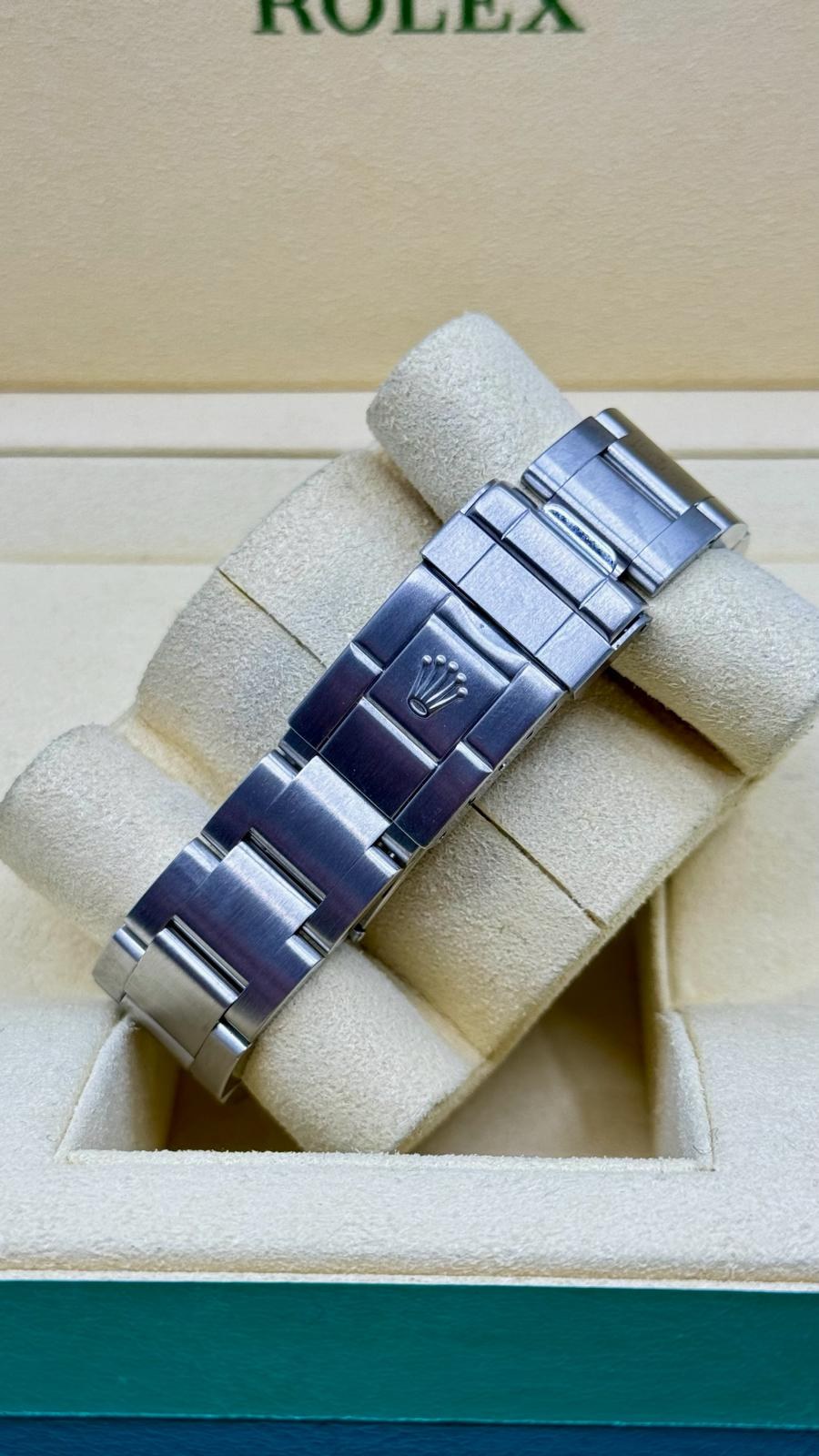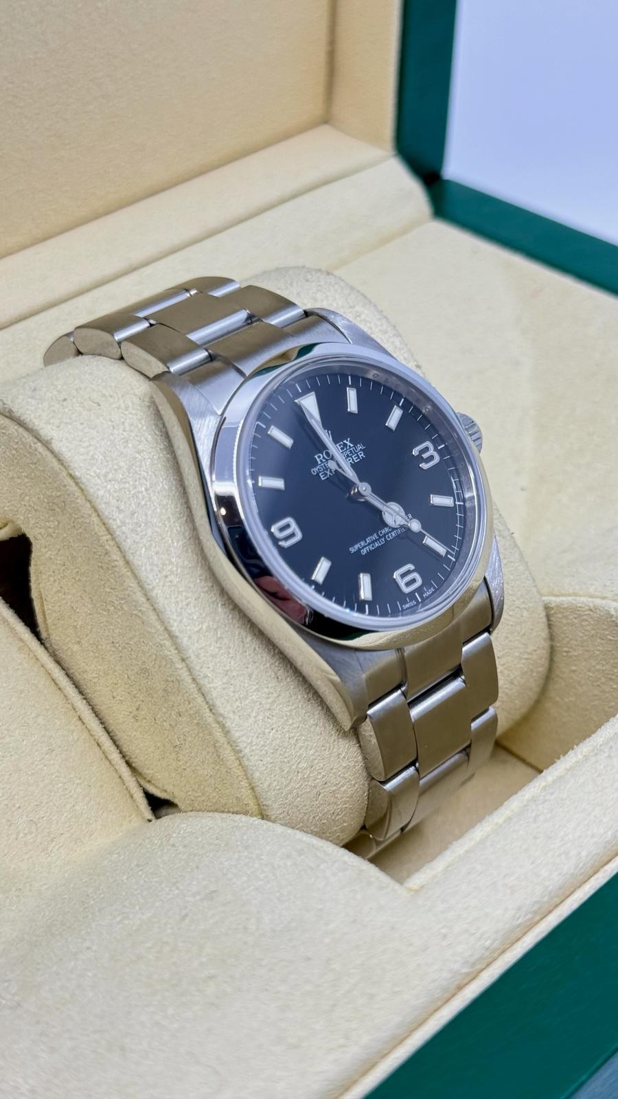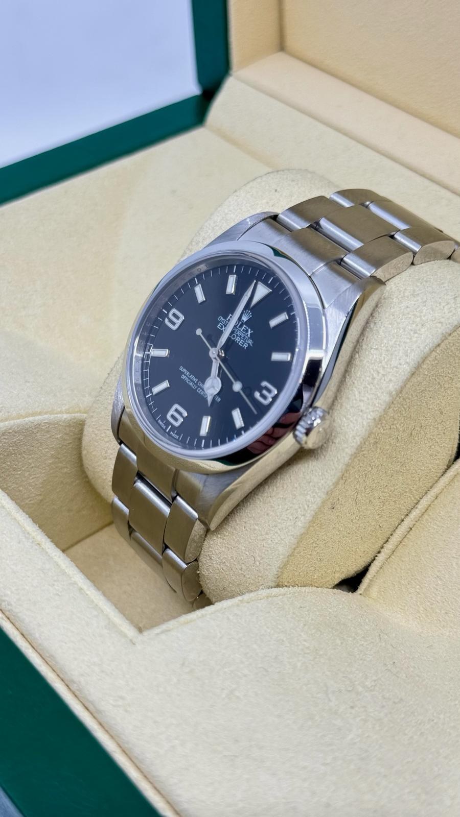 Rolex explorer reference 114270 year 2009 Case material Steel Diameter 36 mm Rolex card guarantee, no box Waterproof 10 ATM Bezel material Steel Glass Sapphire glass Dial Black Strap material Steel Strap color Steel Folding clasp Clasp material Steel |