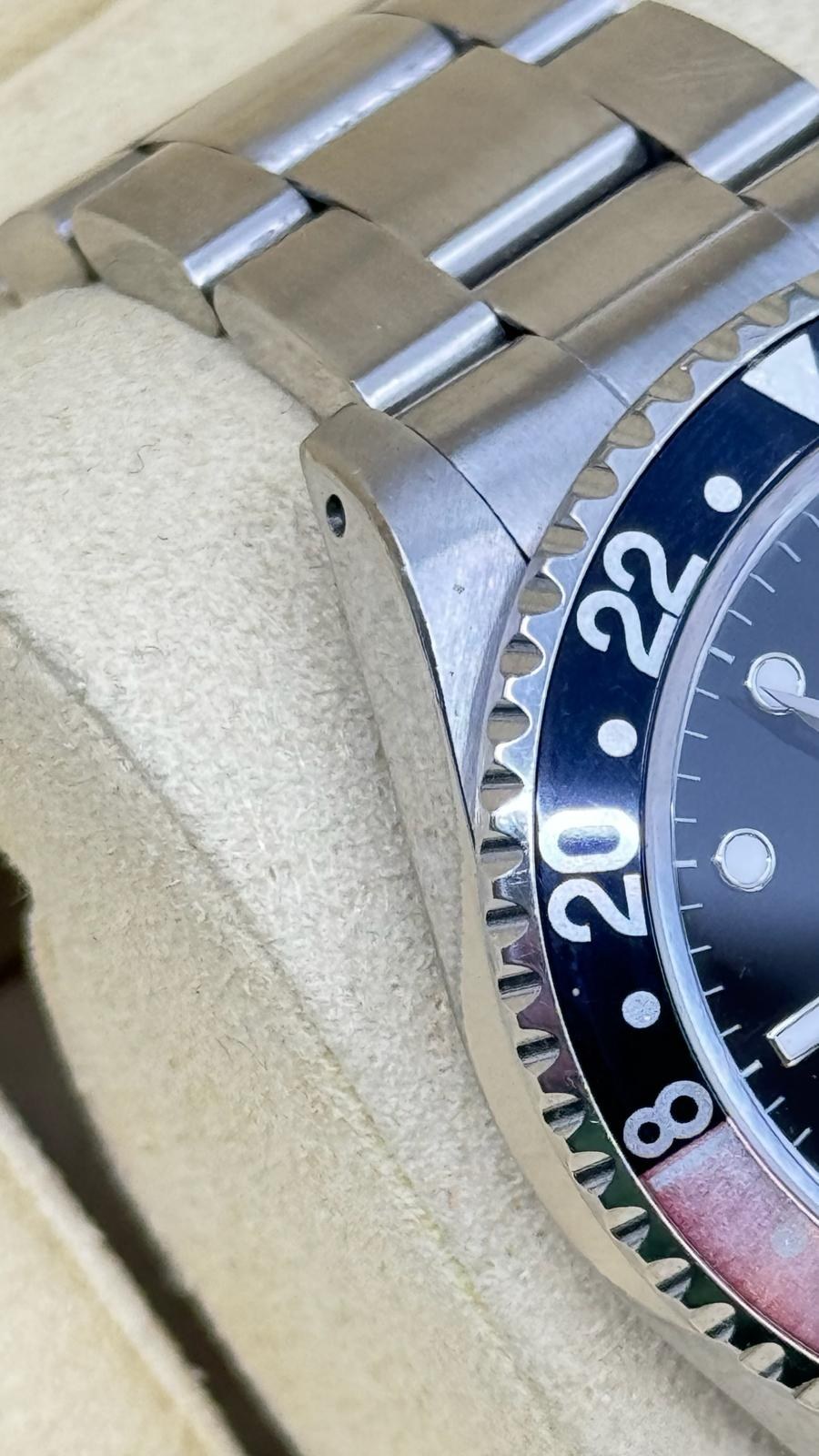 Brand Rolex Model (Watch) GMT-Master II Reference number 16710 Winding Automatic Case material Steel Strap material Steel 1990s Condition Excellent (second hand, no or barely visible signs of wear) Kit With original documents, without original box Caliber Winding Automatic Case Case material Steel Diameter 40 mm Waterproof 10 ATM Glass Sapphire glass Black dial Numbers on the dial Without numbers Strap Strap material Steel Strap color Steel Folding clasp Clasp material Steel