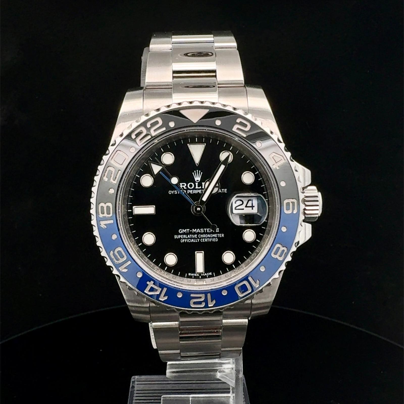 BRAND ROLEX MODEL GMT-MASTER II REFERENCE 116710BLNR AUTOMATIC WINDING CASE MATERIAL: STEEL STRAP MATERIAL STEEL YEAR OF PRODUCTION 2012/2014 CONDITION EXCELLENT KIT: ORIGINAL ROLEX GUARANTEE, NO BOX DIAMETER 40 MM WATERPROOF: 10 ATM BEZEL MATERIAL CERAMIC SAPPHIRE GLASS BLACK DIAL