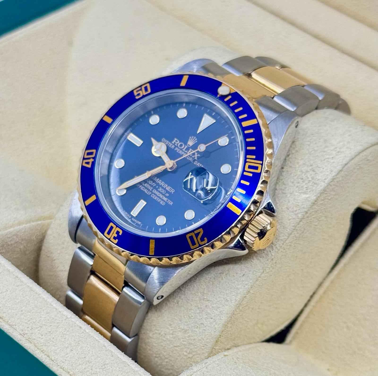Brand Rolex Model (Watch) Submariner Date Reference number 16613 Winding Automatic Case material Gold/Steel Strap material Gold/steel 1990s Condition Excellent (second hand, no or barely visible signs of wear) Original documents set, without original box Case Case material Gold/Steel Diameter 40 mm Waterproof 30 ATM Bezel material Yellow gold Glass Sapphire glass Dial Blue Numbers on the dial Without numbers Strap Strap material Gold/steel Strap color Gold/steel Folding clasp Functions Date |