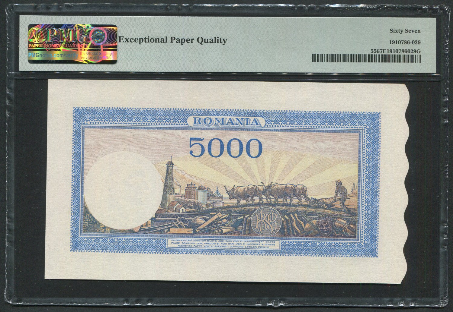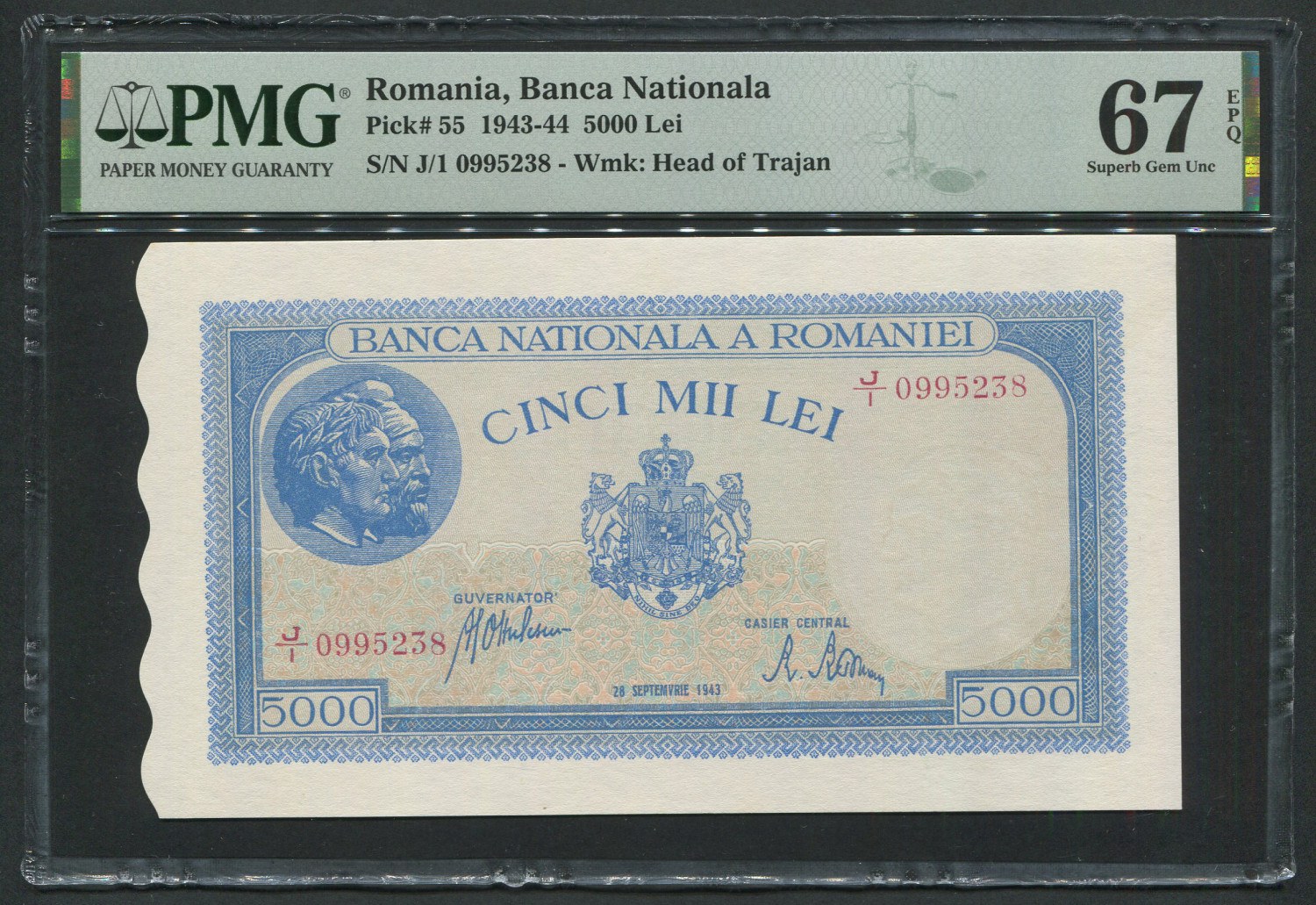 Romania 5000 Lei 1943-44 - PMG 67 EPQ Superb Gem Unc