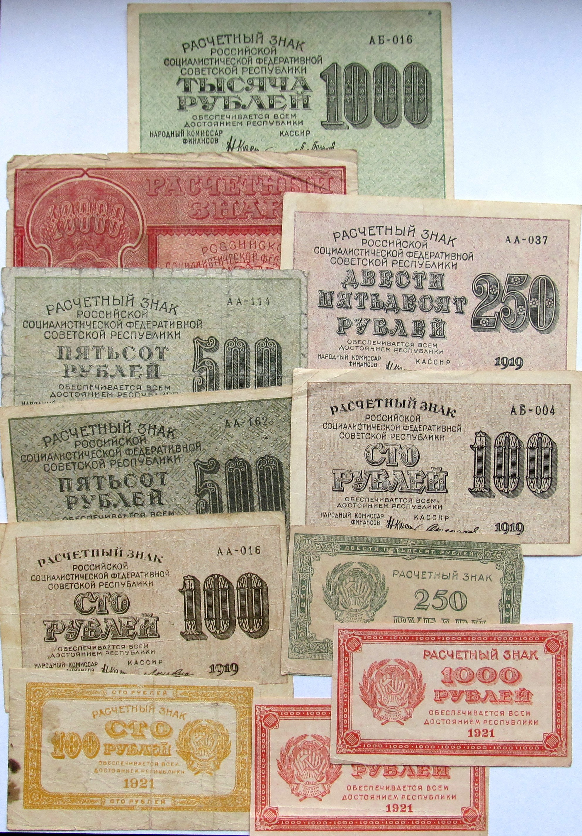 Rosja Porewolucyjna , zestaw banknotów 1919-1920, 11 sztuk, różne nominały od 100 -10000 rubli