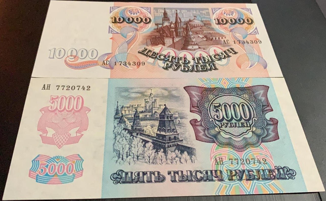 Russia, 5.000 Ruble and 10.000 Ruble, 1992, UNC, p252, p253, (Total 2 banknotes)
