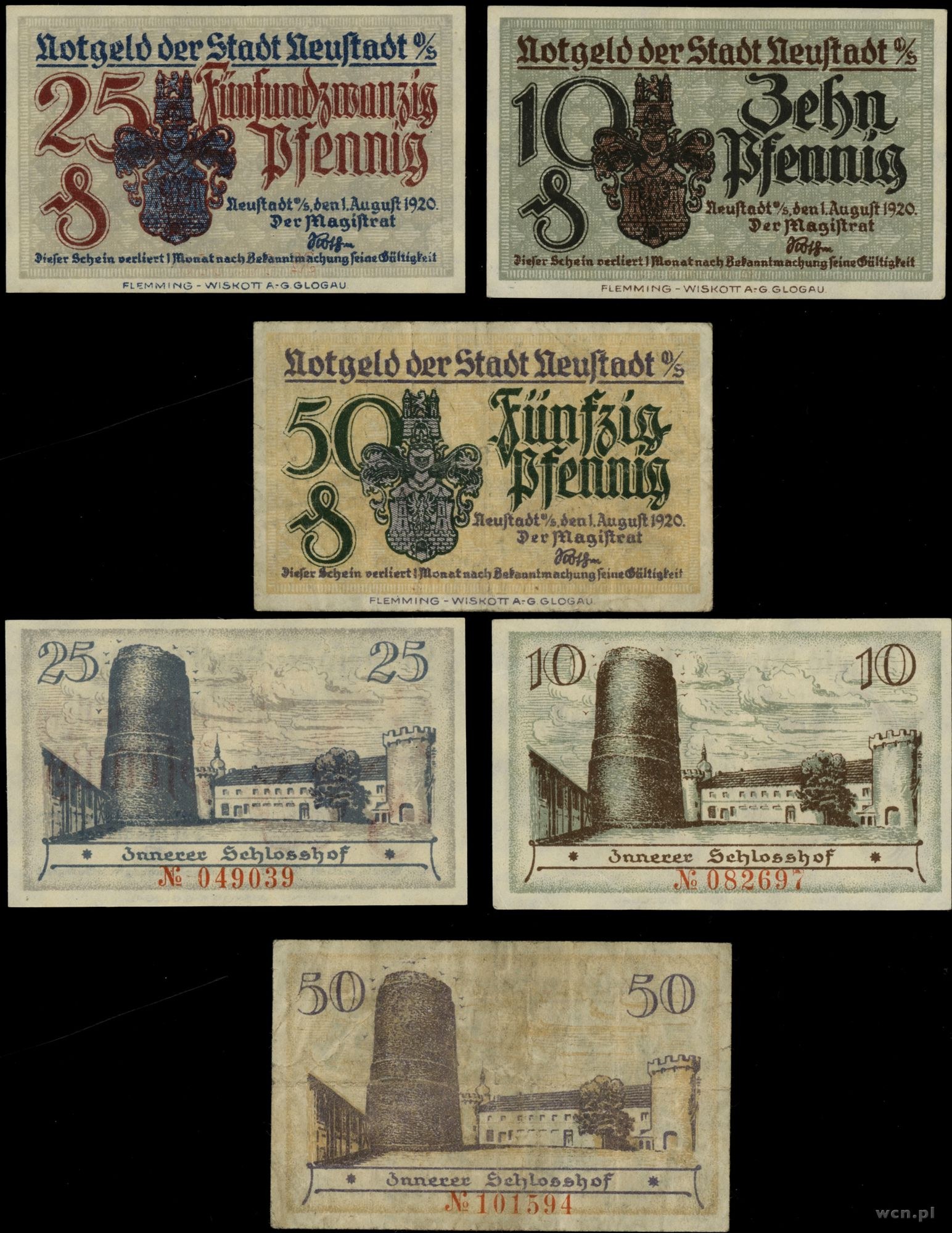 10 fenigów (st. II/II-), 25 fenigów (st. I-), 50 fenigów (st. III/IV)