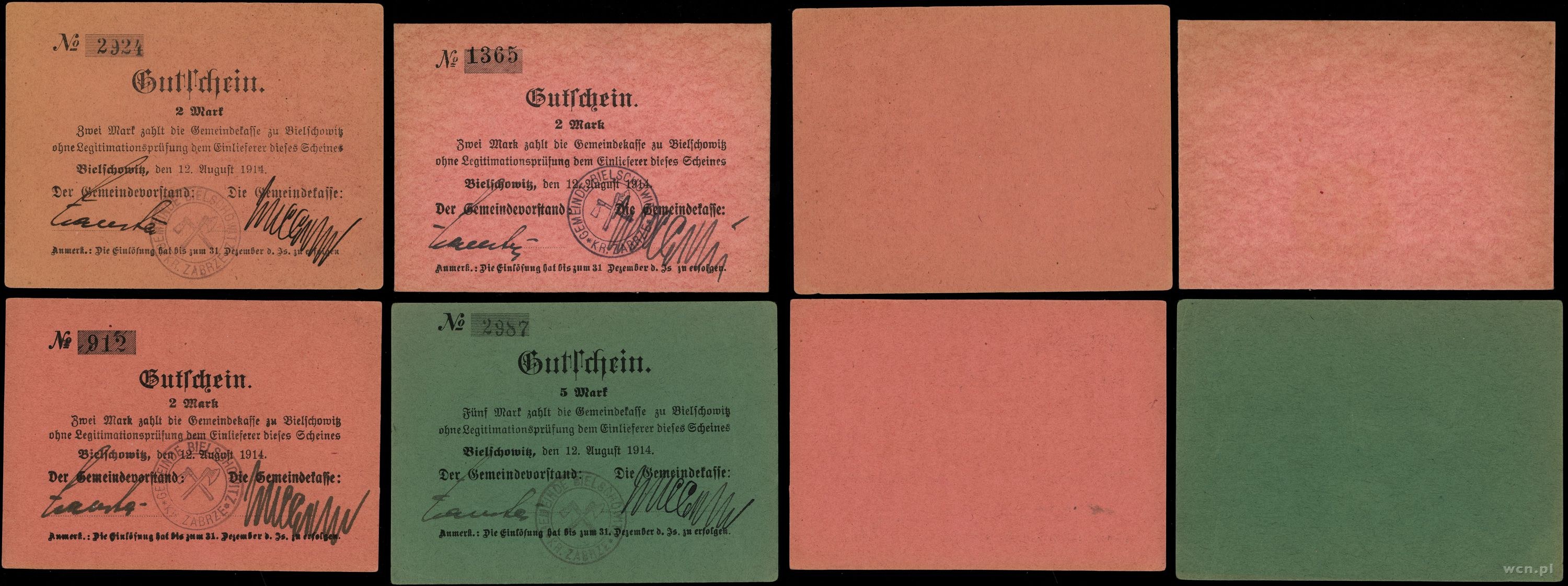 Śląsk, zestaw: 3 x 2 marki oraz 1 x 5 marek, 12.08.1914