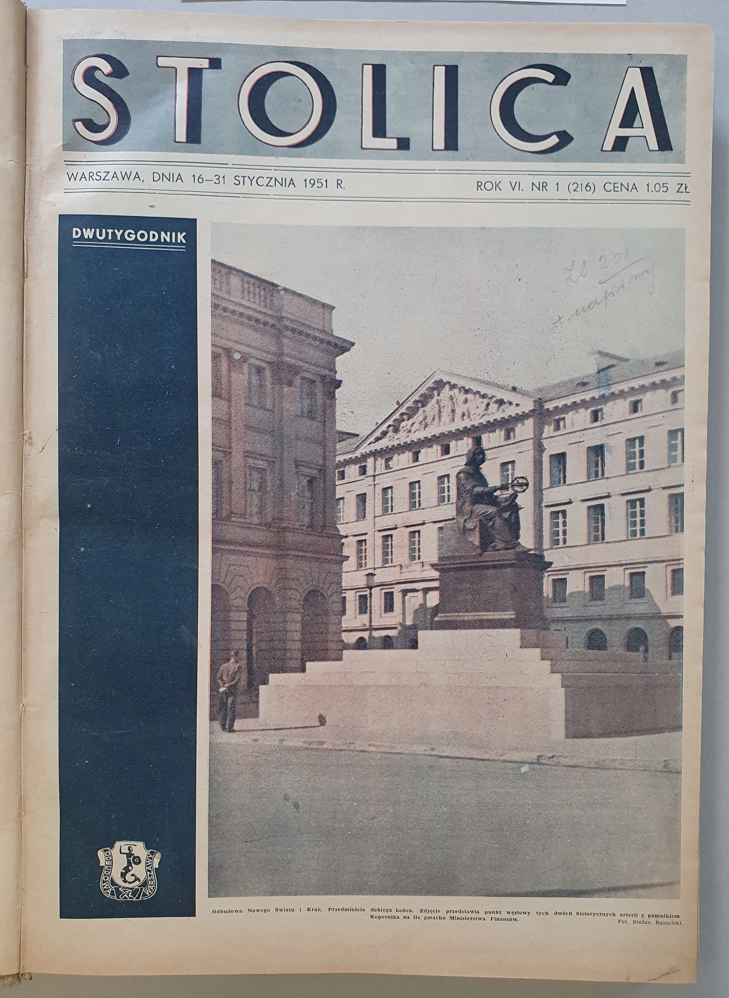 Stolica. Dwutygodnik., R.6: 1951 nr 1 (16-31 I) - 23 (15 XII)/ R.7:1952 nr 1 (1 I) - 24 (15 XII) dwa roczniki współoprawne.