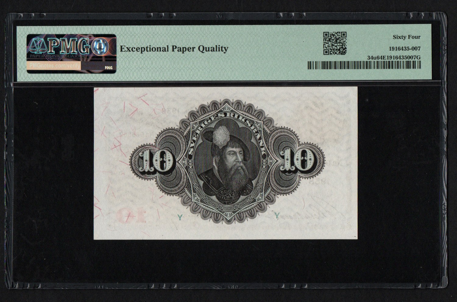 Sweden 10 Kronor 1938 - PMG 64 EPQ Choice Uncirculated