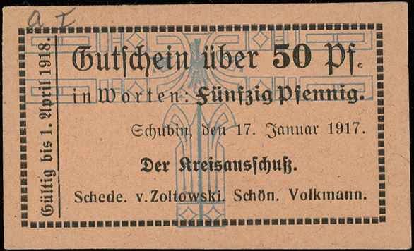 Szubin /Schubin/, 10 i 50 fenigów 17.01.1917 oraz 10 i ...