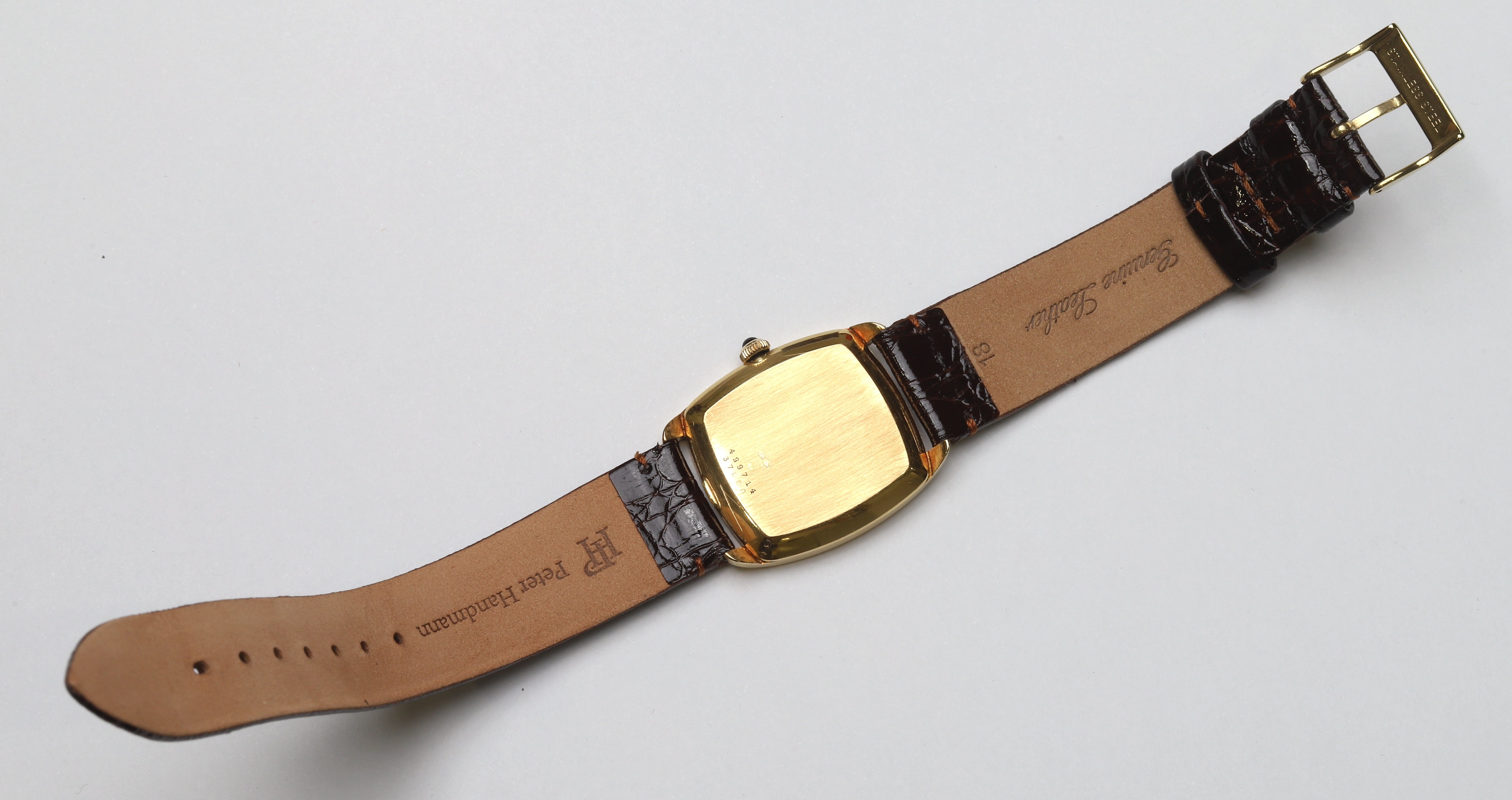 Złoto, szerokość z koronką 31 mm, szerokość lug-to-lug 34 mm. Długość z paskiem 21 cm.