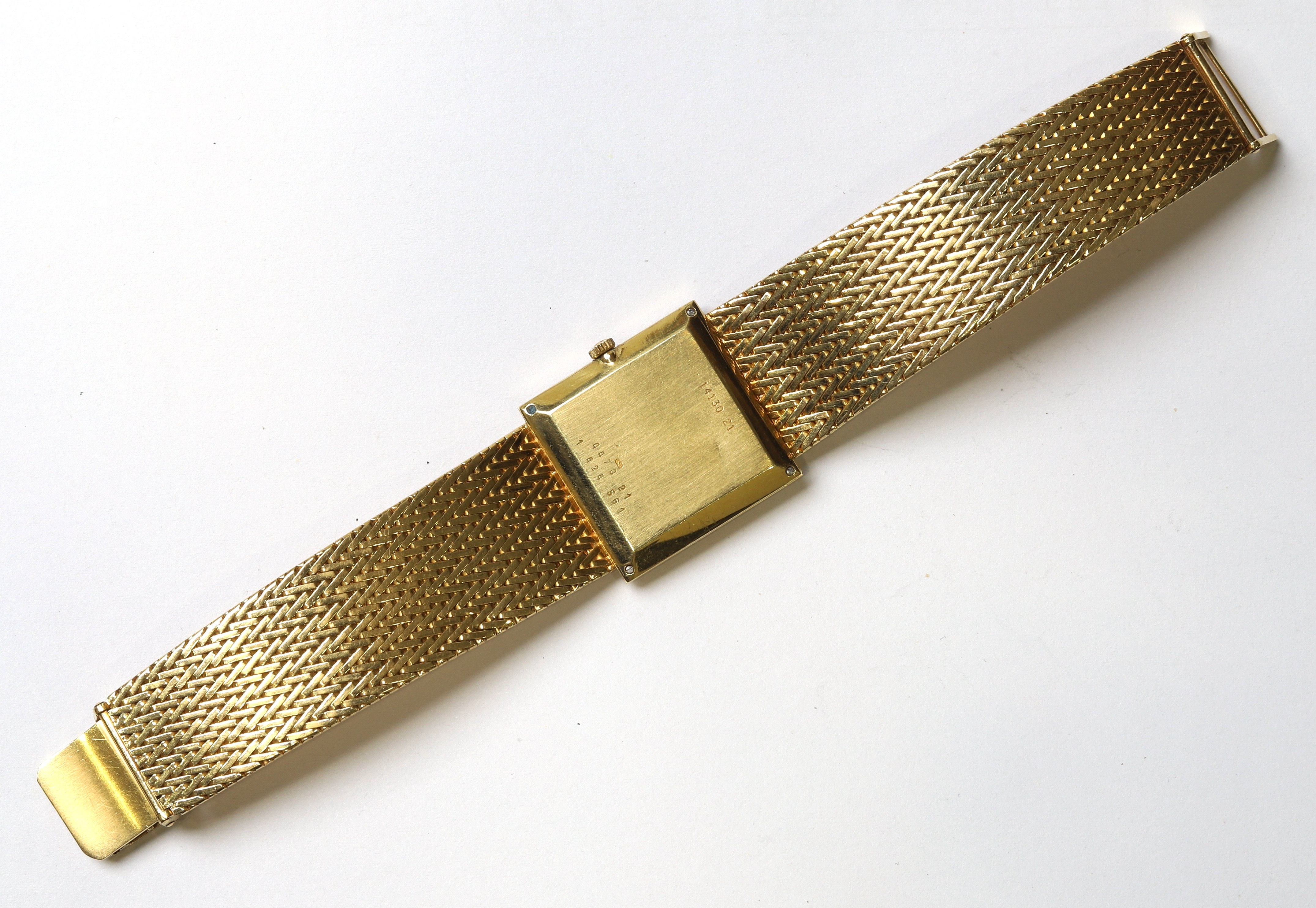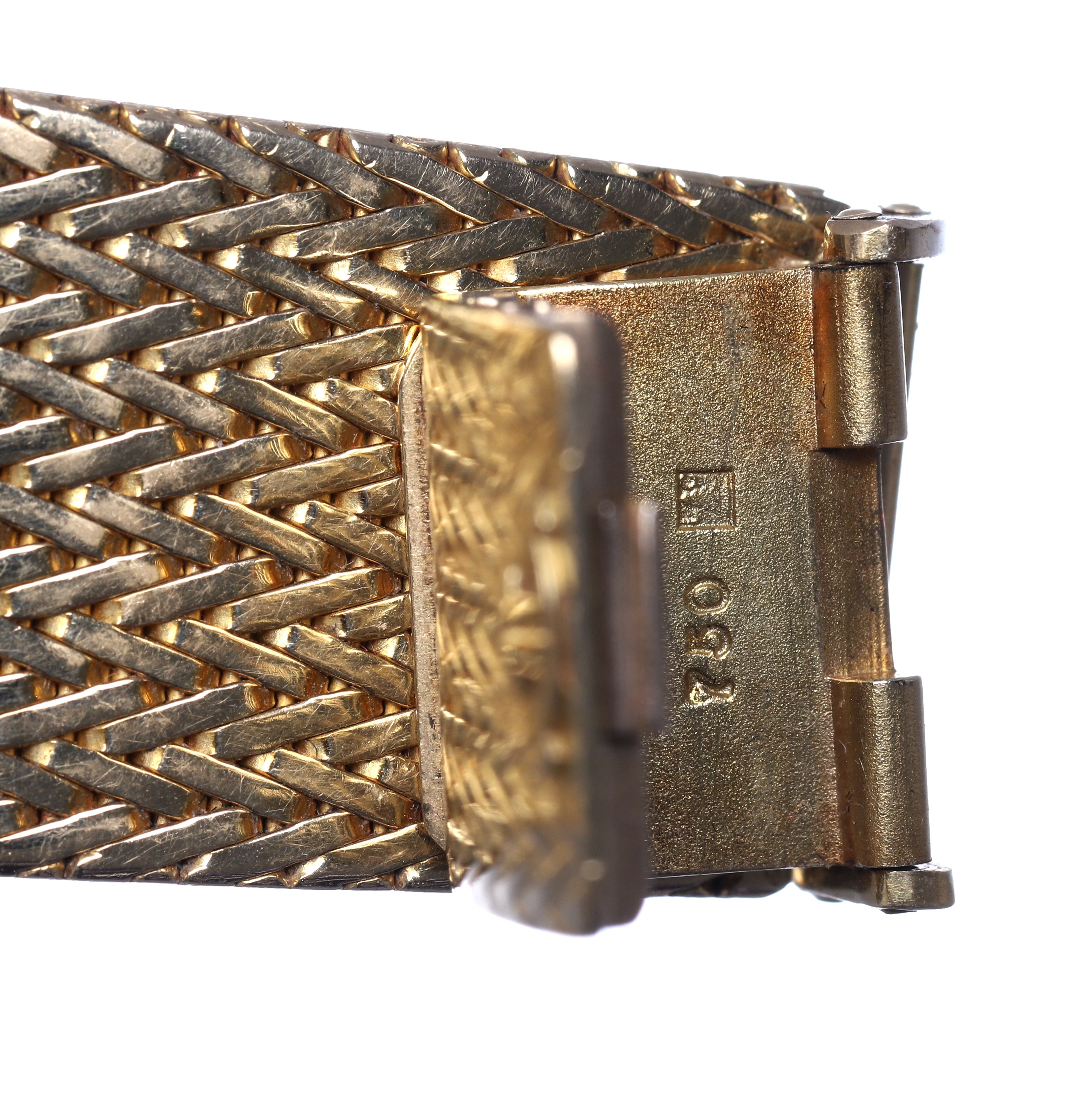 Złoto 18 k, szerokość z koronką 28,5 mm, szerokość lug-to-lug 27 mm, długość z paskiem 19 cm. Waga całości 71,54 g.