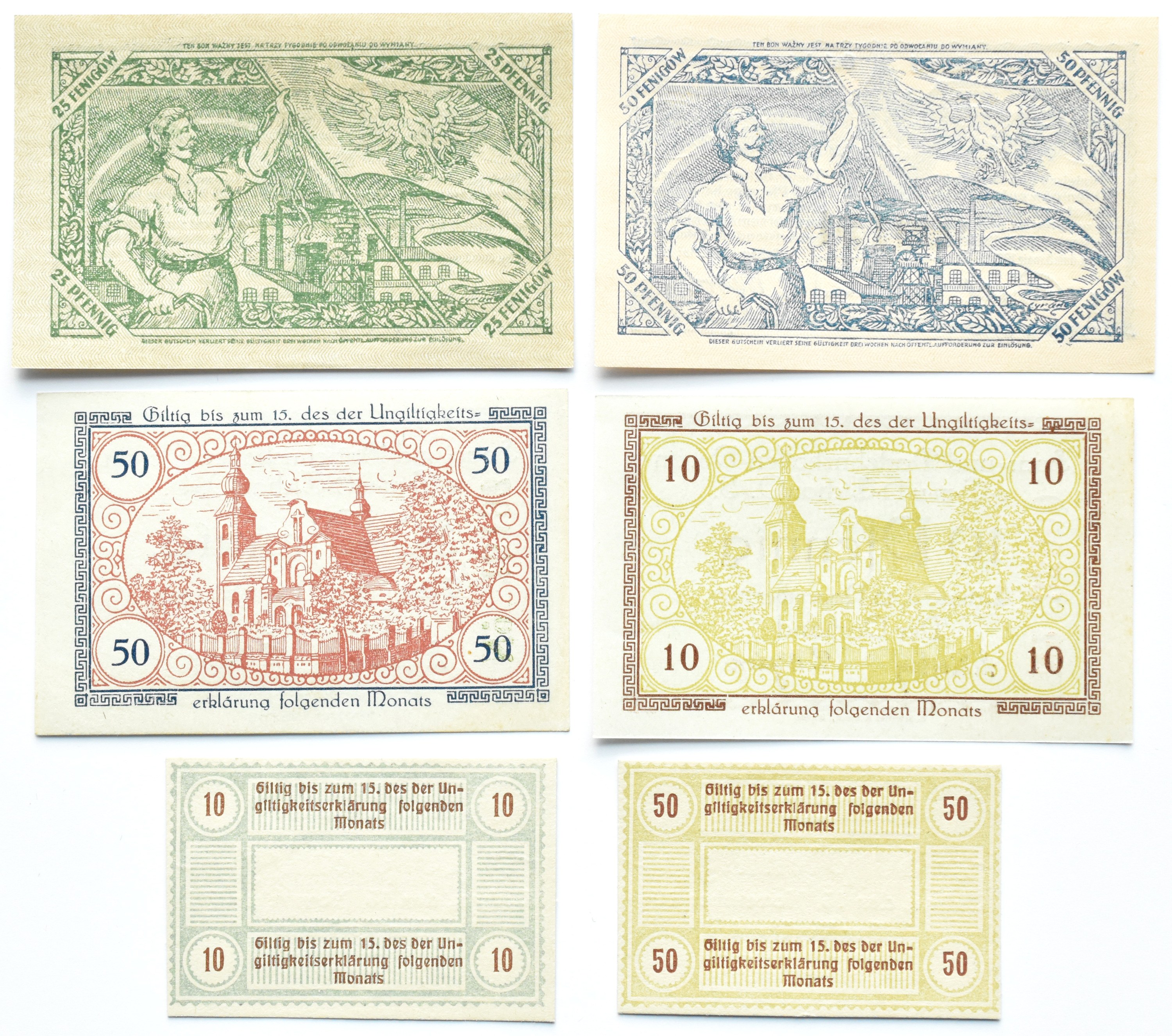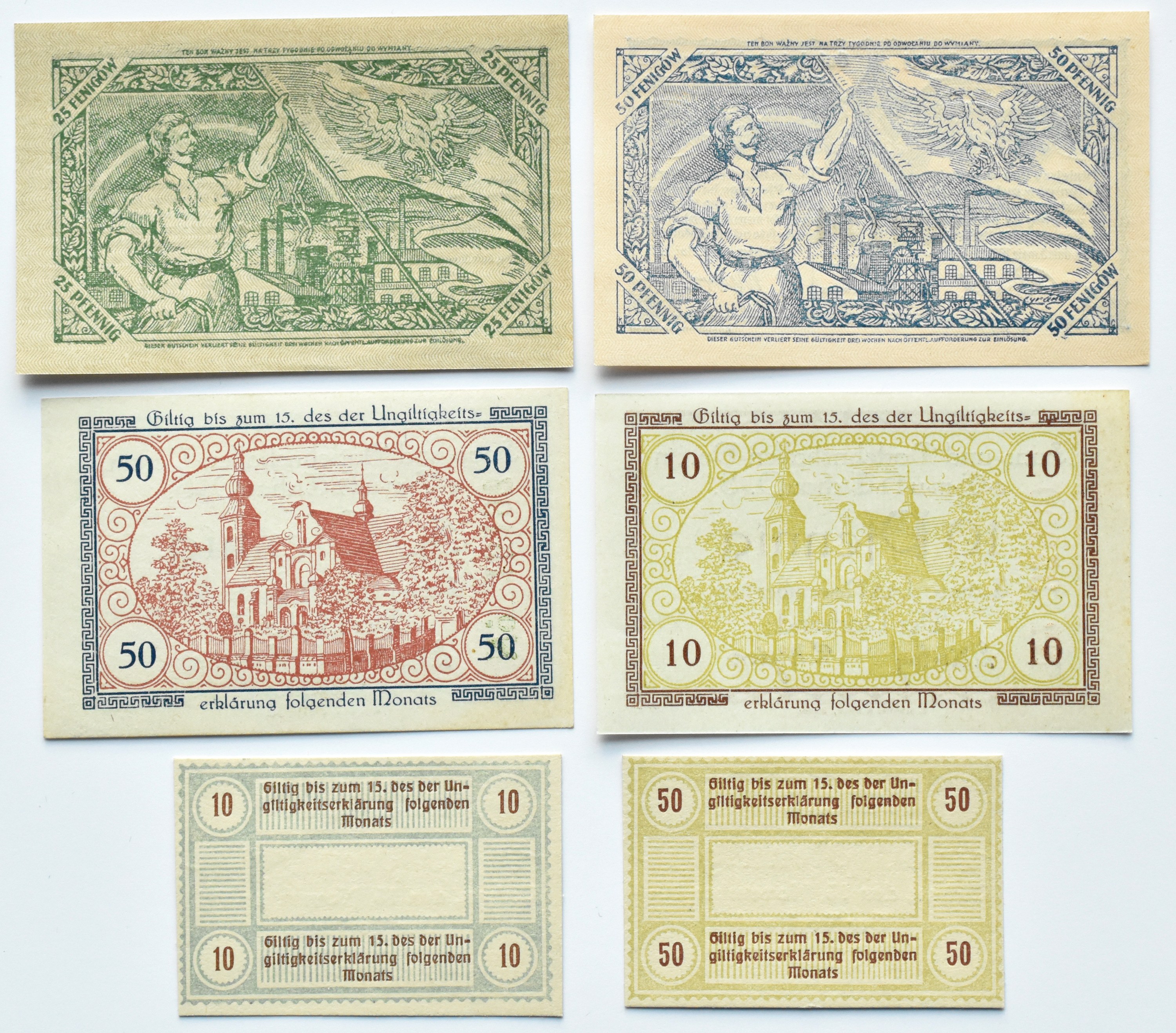 Tichau/Tychy, lot 6 notgeldów, 10-50 pfennigów 1918-1921, UNC