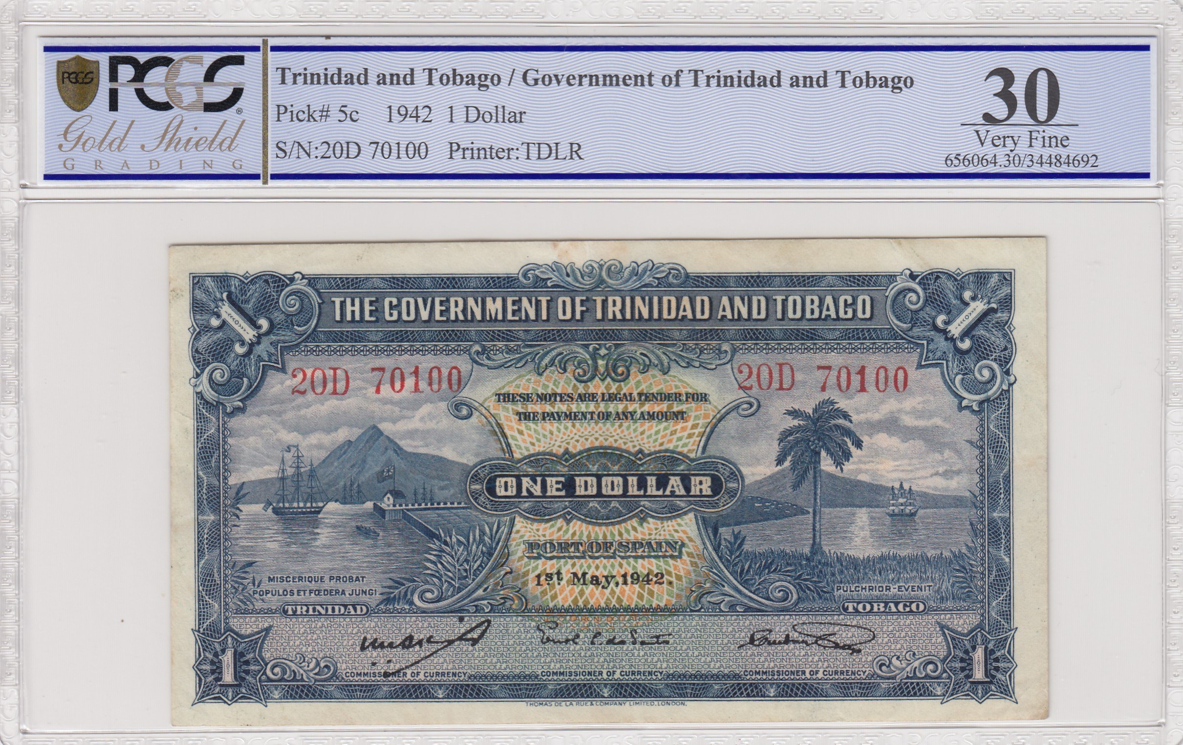 Trinidad and Tobago, 1 Dollar, 1942, VF, p5c