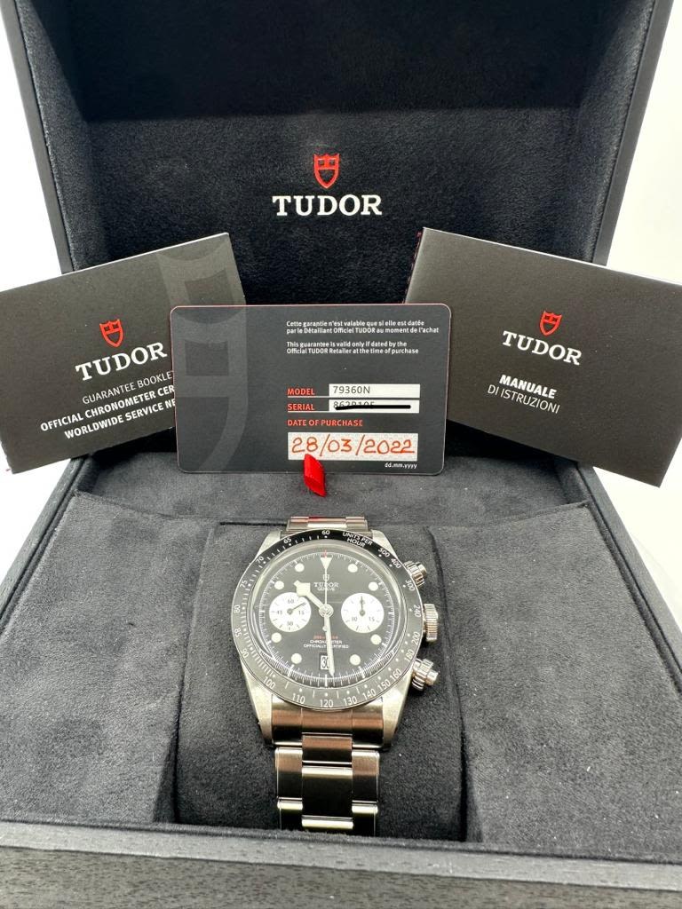 Brand Tudor Model (Watch) Black Bay Chrono NEW Reference number 79360N Winding Automatic Case material Steel Strap material Steel Year of production 2022 Kit With original box and original documents Caliber Winding Automatic Case Case material Steel Diameter 41 mm Waterproof 20 ATM Bezel material Steel Glass Sapphire glass Dial Black Numbers on the dial Without numbers Strap Strap material Steel Strap color Steel folding Clasp material Steel |