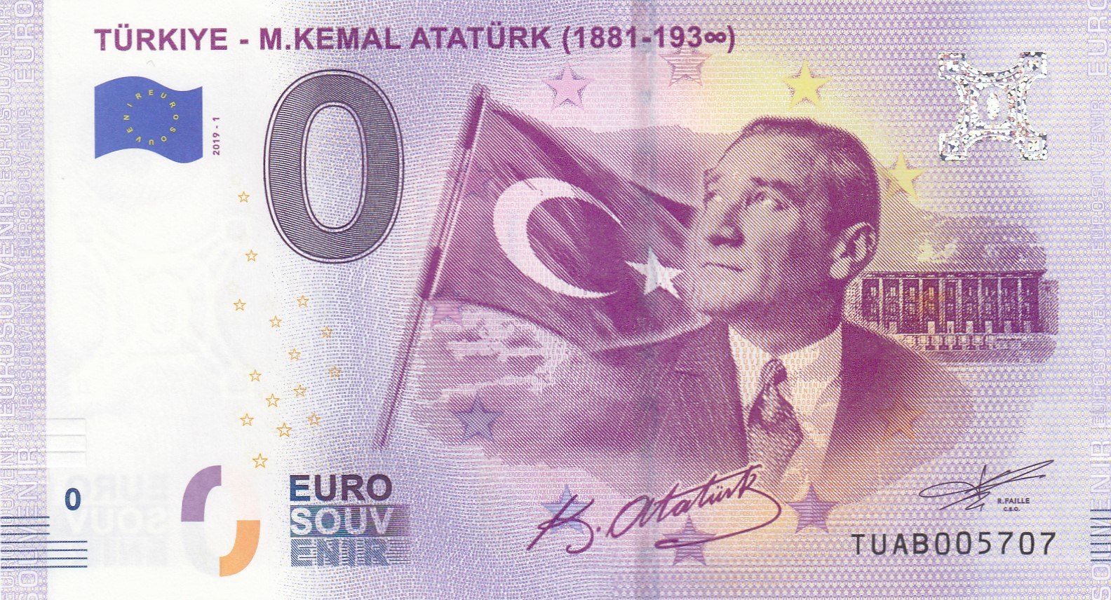 Turkey, 0 Euro, 2019, UNC, FANTASY BANKNOTE, Atatürk