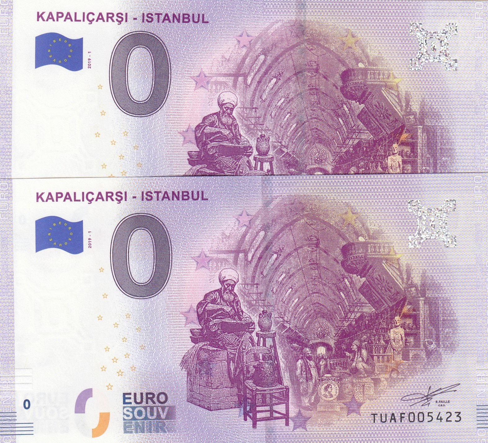 Turkey, 0 Euro, 2019, UNC, FANTASY BANKNOTE, Kapalıçarşı- İstanbul (Total 2 banknotes)
