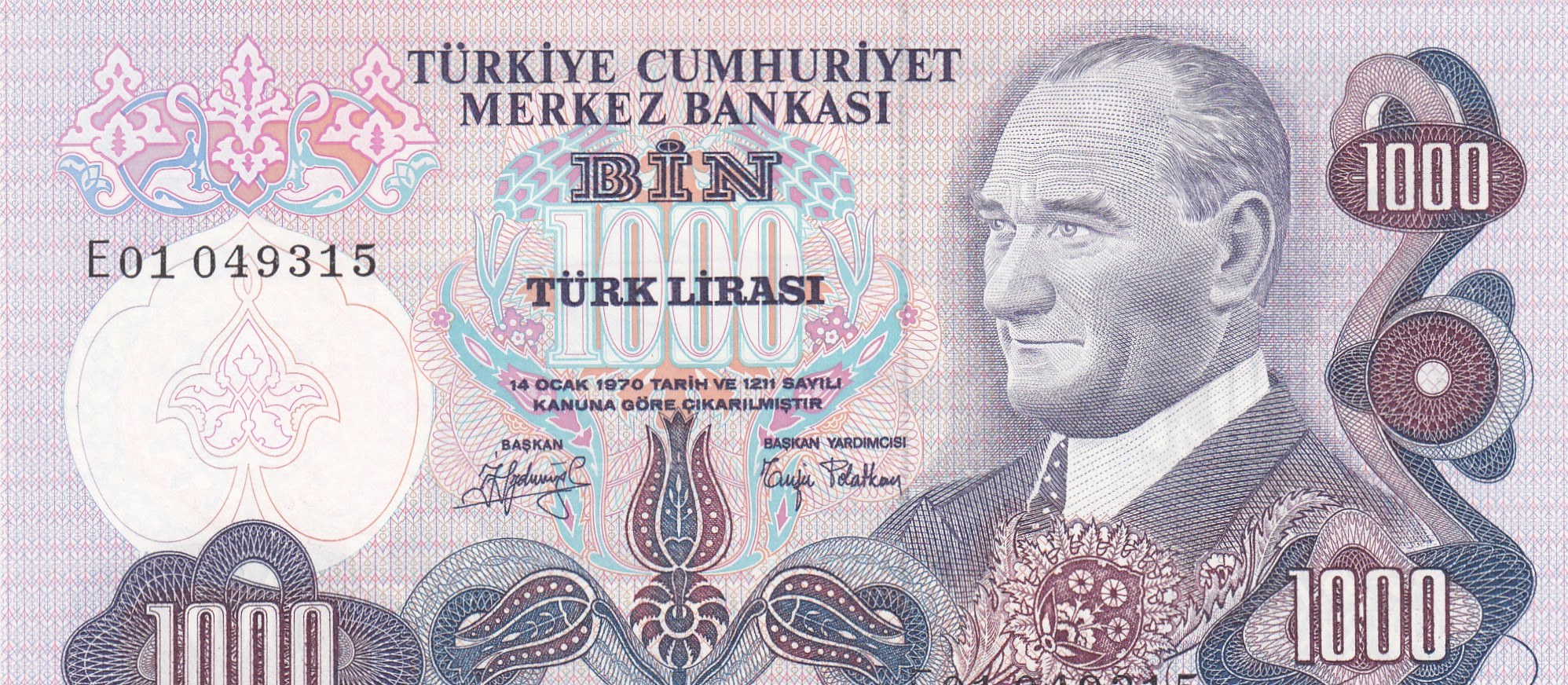 Turkey, 1.000 Lira, 1979, UNC, 6/2. Emission, p191, "E01" first prefix