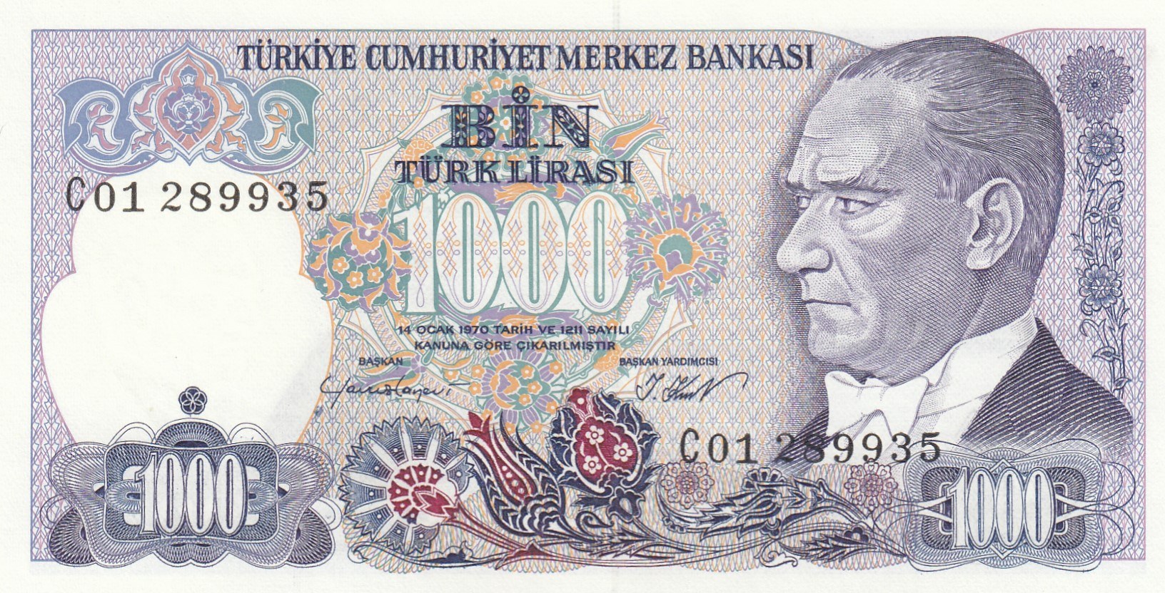 Turkey, 1.000 Lira, 1986, UNC, 7/1. Emission, p196, "C01" first prefix