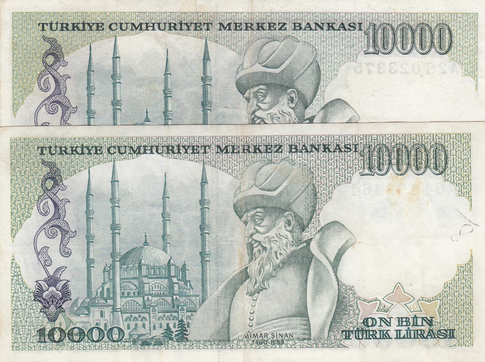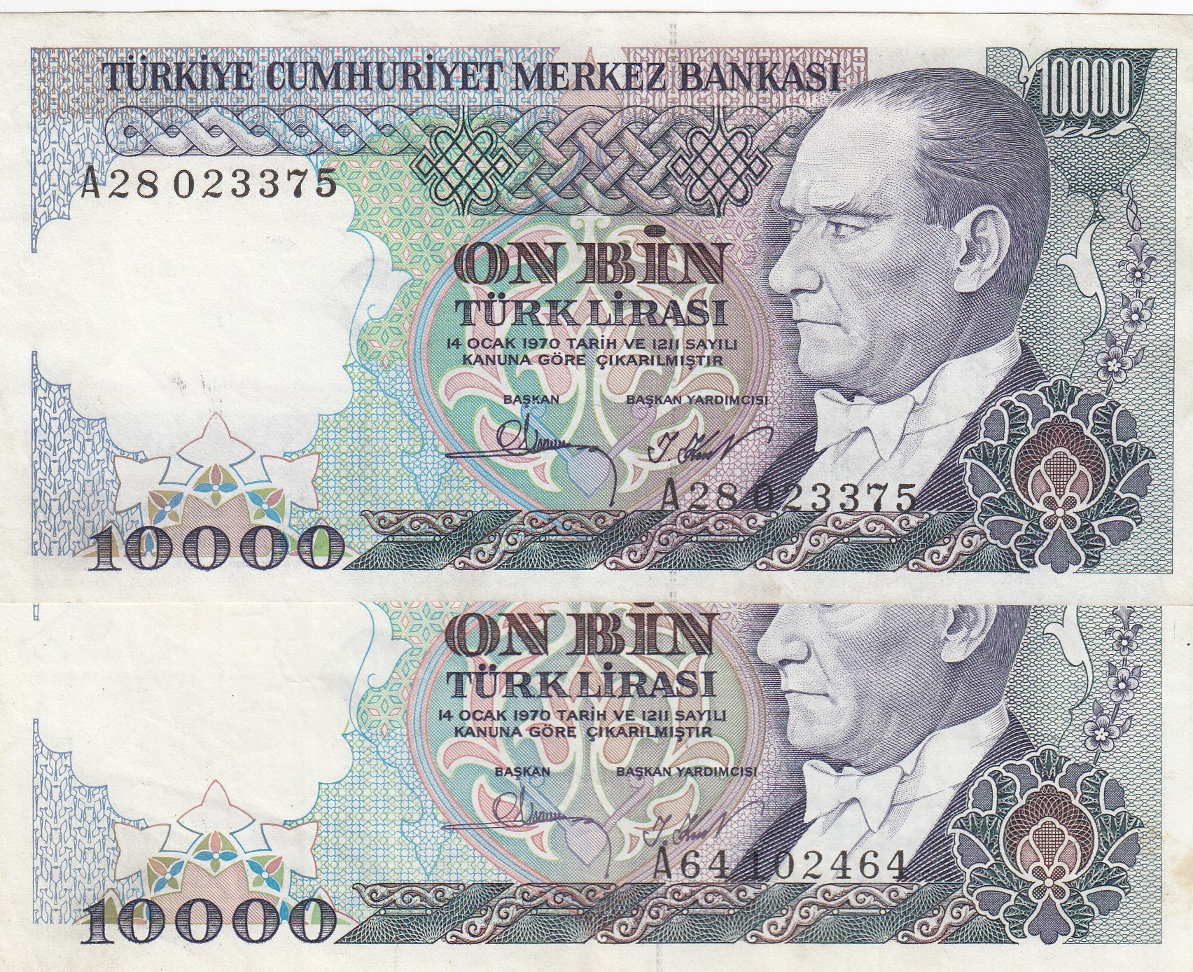 Turkey, 10.000 Lira, 1982, XF, 7/1. Emission, p199, DIFFERENT WATERMARK, (Total 2 banknotes)