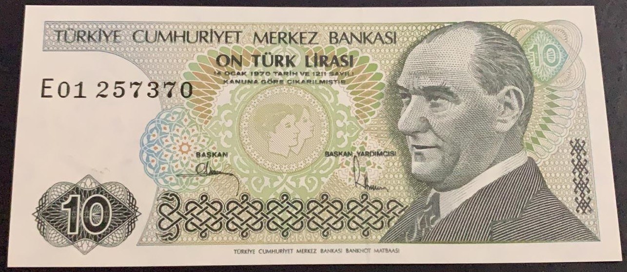 Turkey, 10 Lira, 1982, UNC, 7/2. Emission, p193, "E01" first prefix