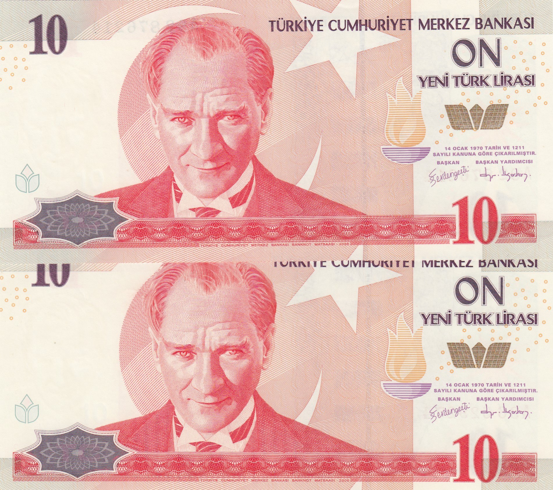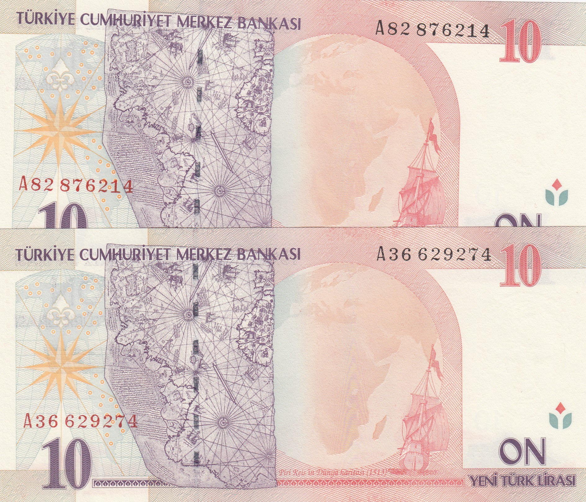 Turkey, 10 New Turkish Lira, 2005, UNC, 8/1. Emission, p218, (Total 2 banknotes)