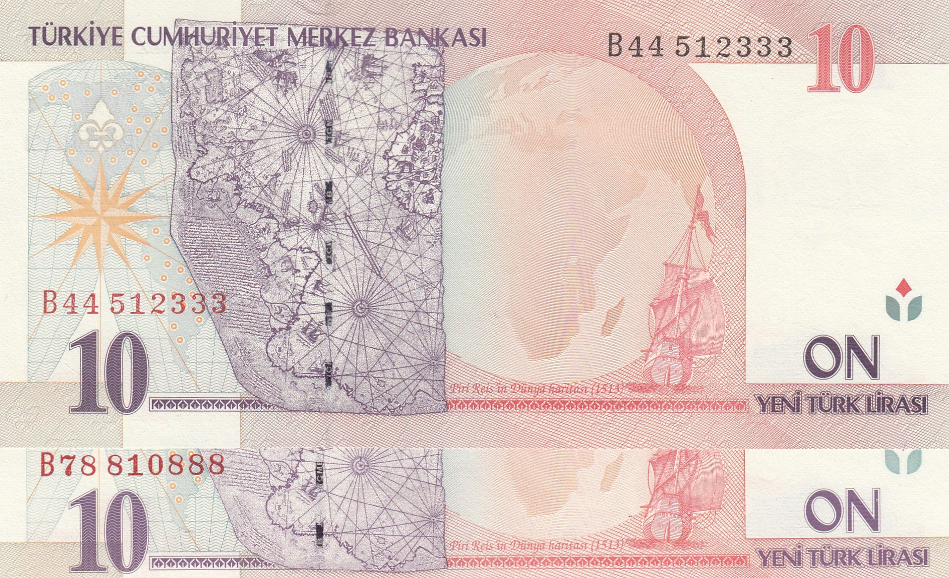 Turkey, 10 New Turkish Lira, 2005, UNC, 8. Emission, p218, (Total 2 banknotes)
