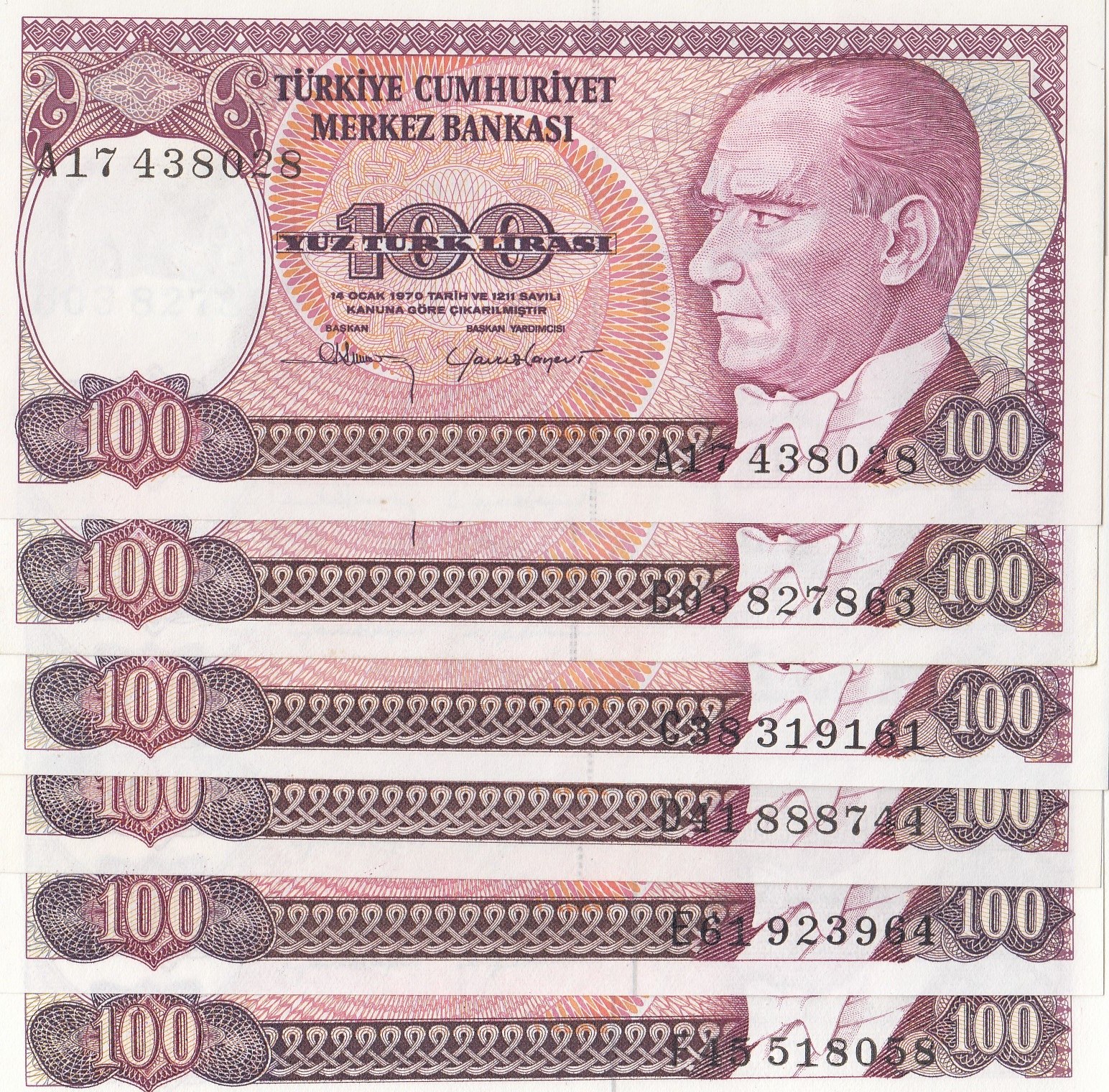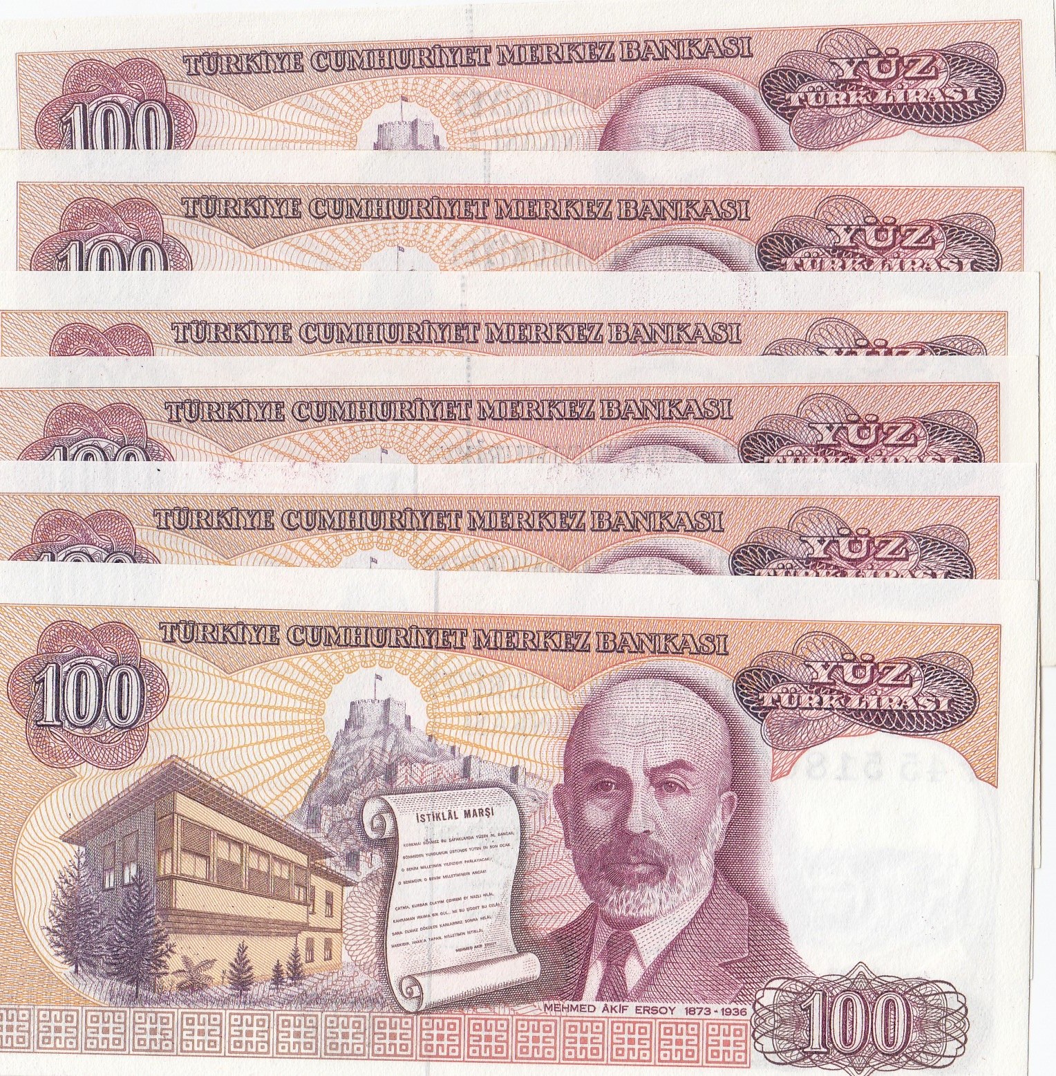 Turkey, 100 Lira, 1983/1984, UNC, 7/1. and 7/2. Emission, p194, (Total 6 banknotes)