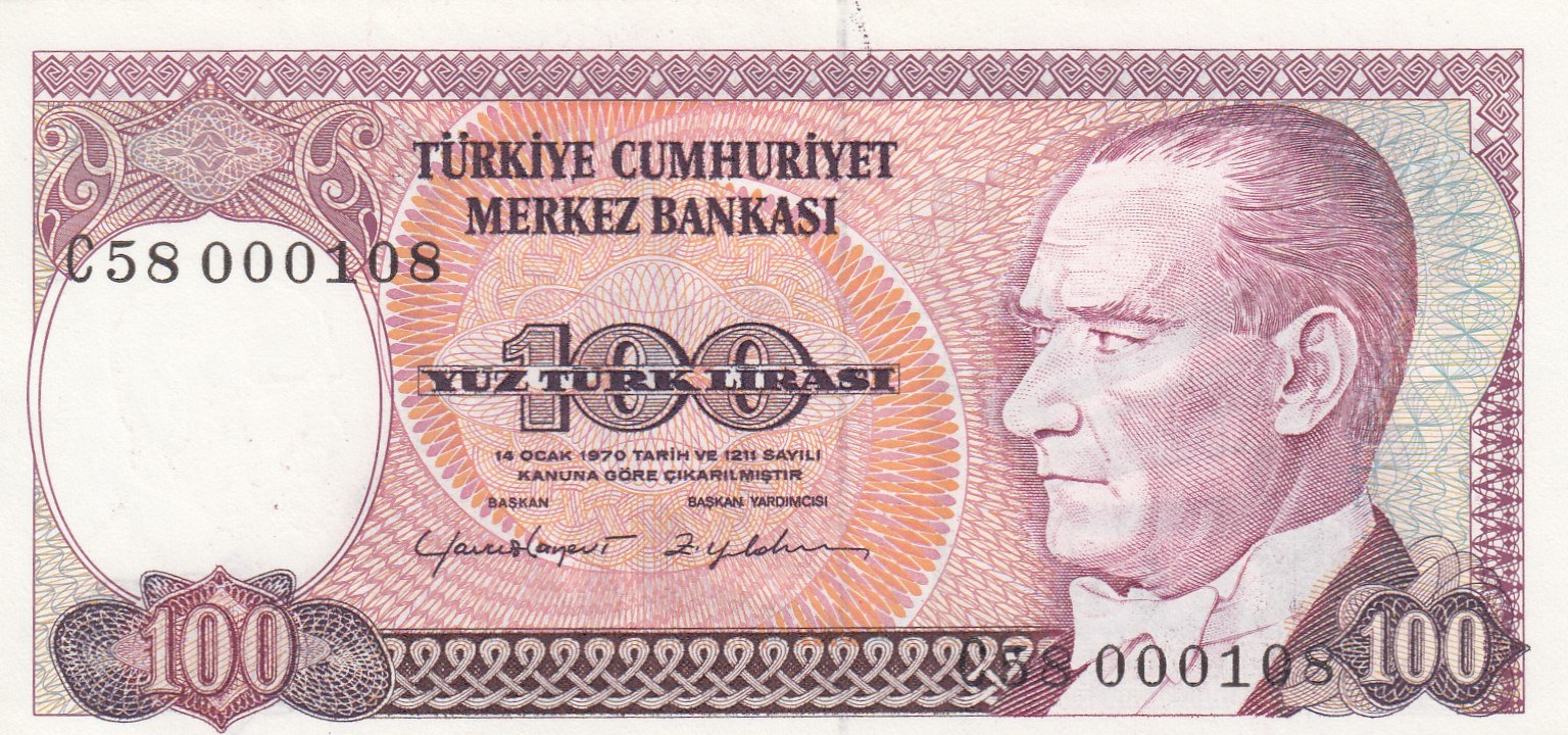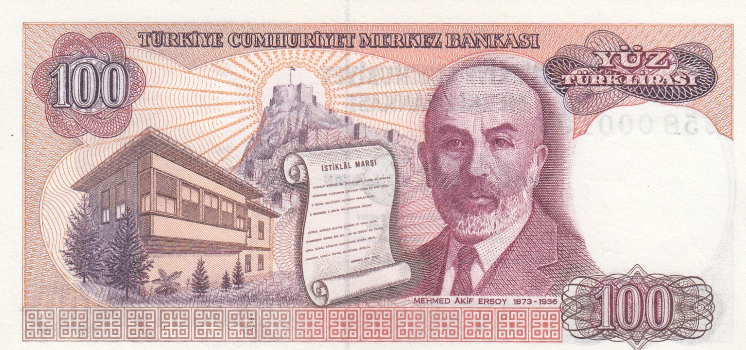 Turkey, 100 Lira, 1984, UNC, 7/2. Emission, p194, Low Serial Number