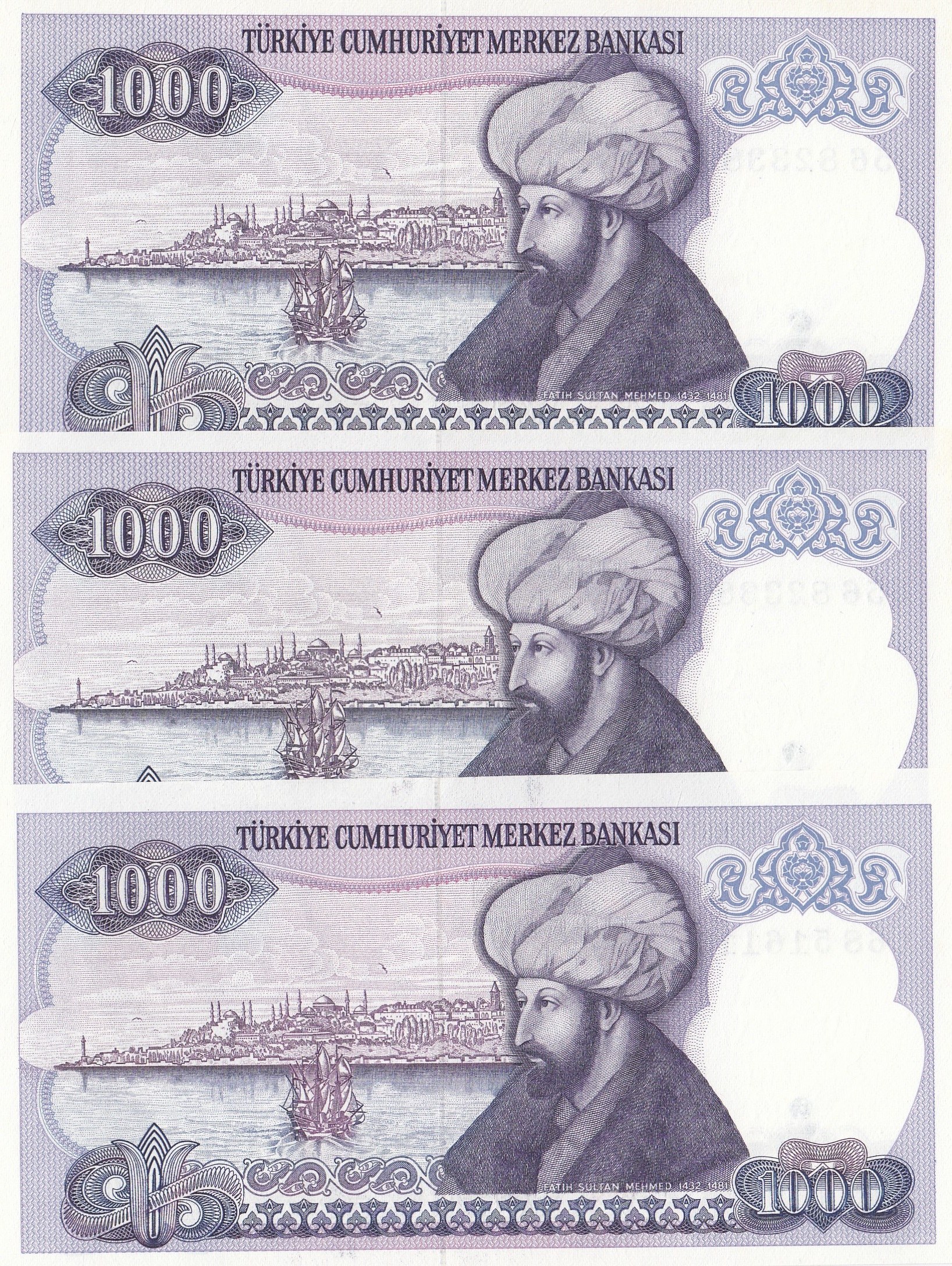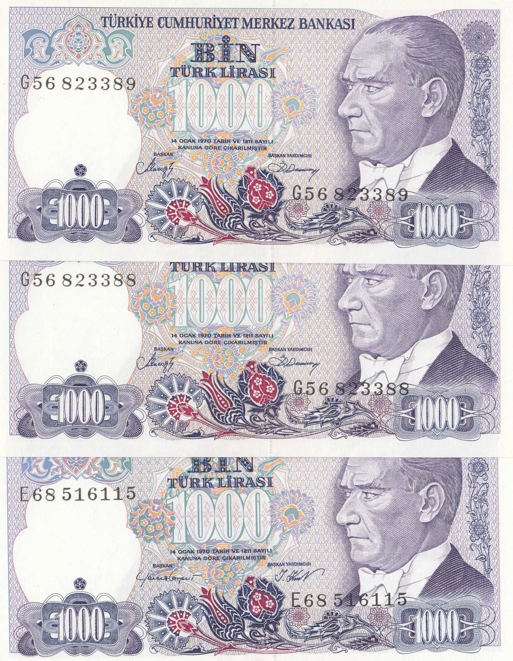 Turkey, 1000 Lira, 1986-1988, UNC, p196, (Total 3 banknotes)
